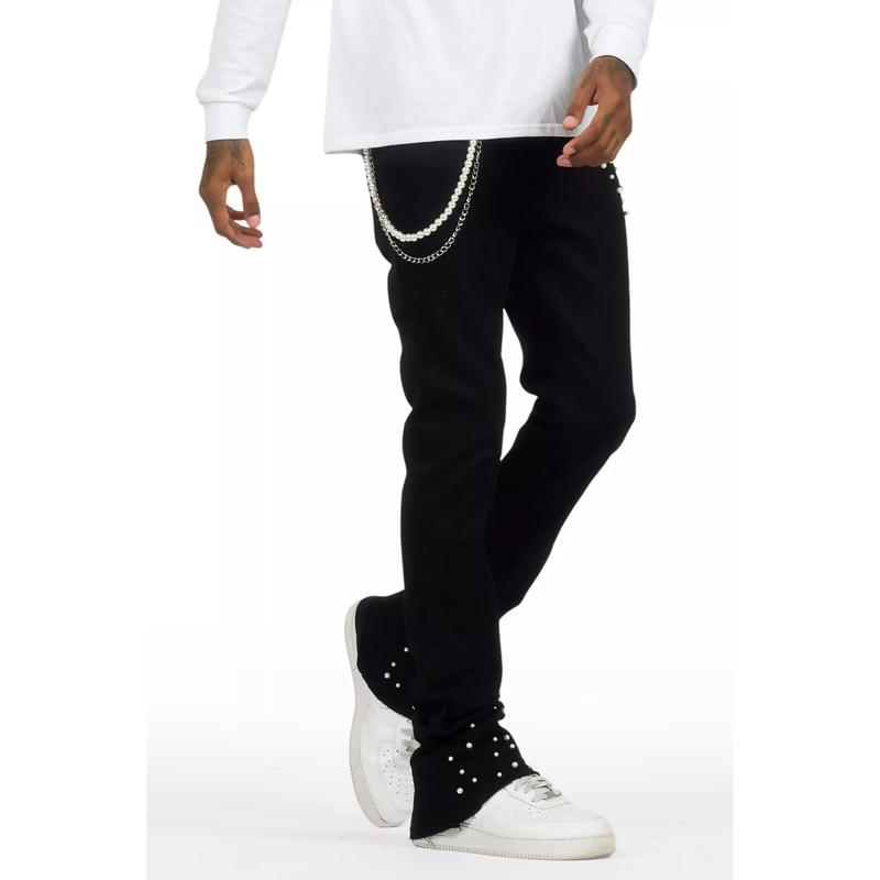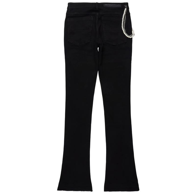 Zayvon Jet Black Stacked Flare Jean