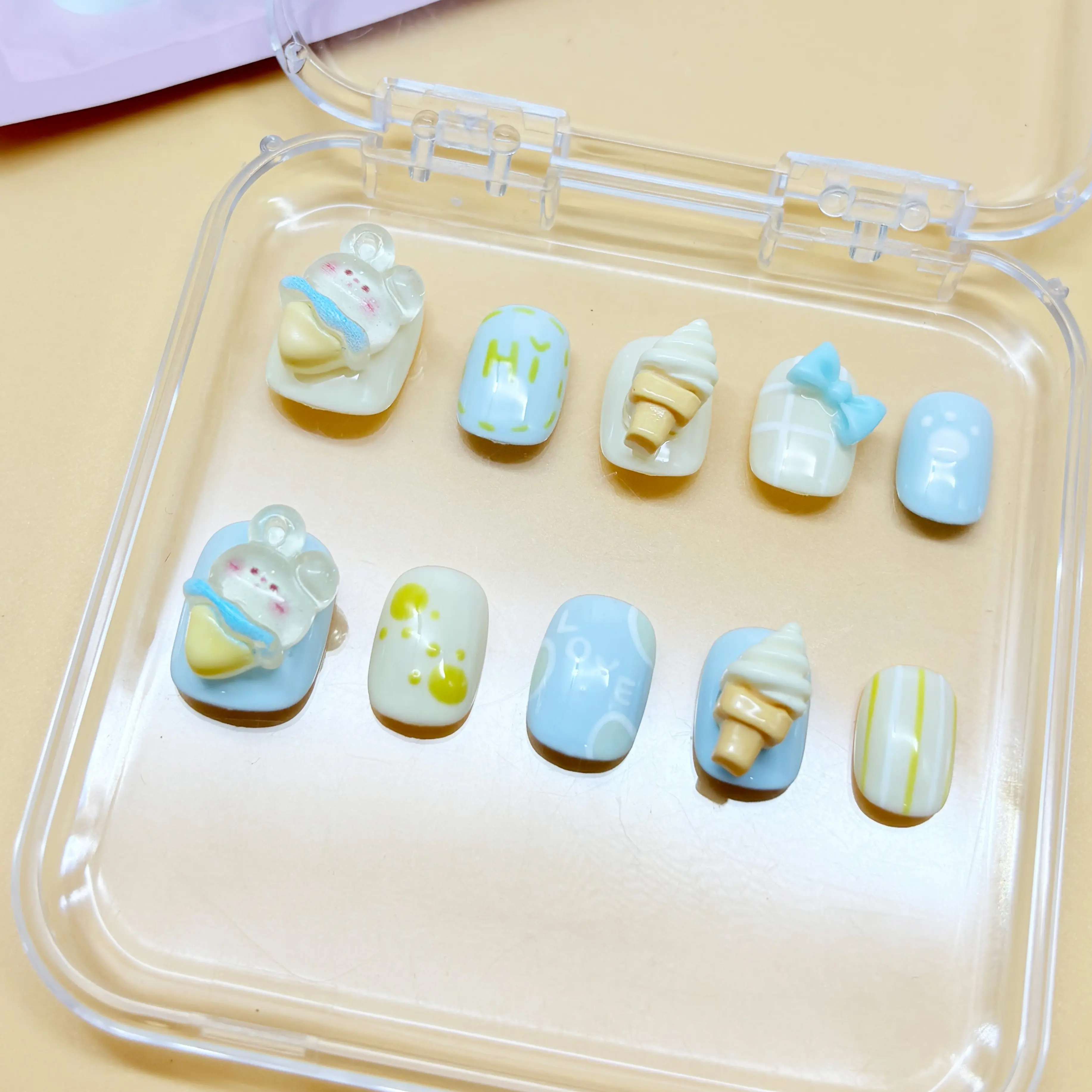 The nails are pretty but I was told in the live feed that they would be in a case. You can see in the picture that none of my nails were.