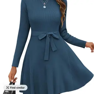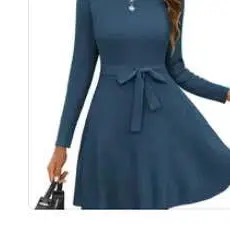 ·【Features】: This long sleeves sweater dress 2025 trendy features a classic crew neck, long sleeves, tie waist, knee length, and slim fit dresses to hide belly fat, the a-line and belt design is fall winter fashion features.