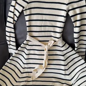 ·【Attention】: This elastic waist casual sweater dress/fall dresses/ crewneck womens dresses with belt/ solid and stripe short dress/ casual mini Dress/ long sleeve wedding guest dress/ cute a line dress/ solid o neck knit dress can be machine-washed and dry flat. Please refer to the Size Chart before ordering