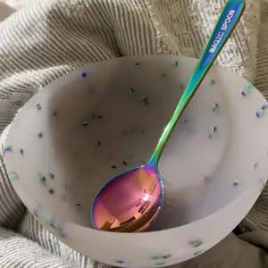 Happiness in a bowl!!!! 🌈 silicone bowl is sturdy and super cute, while the spoon is the perfect size to eat your cereal. Packaging is SUPERB so this could easily be given as a gift! I