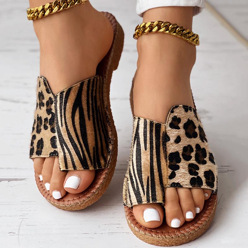 ·These slippers feature a unique zebra stripe and leopard pattern design. Perfect for adding a touch of wild style to your footwear collection. The toe post design offers a distinctive look that stands out.