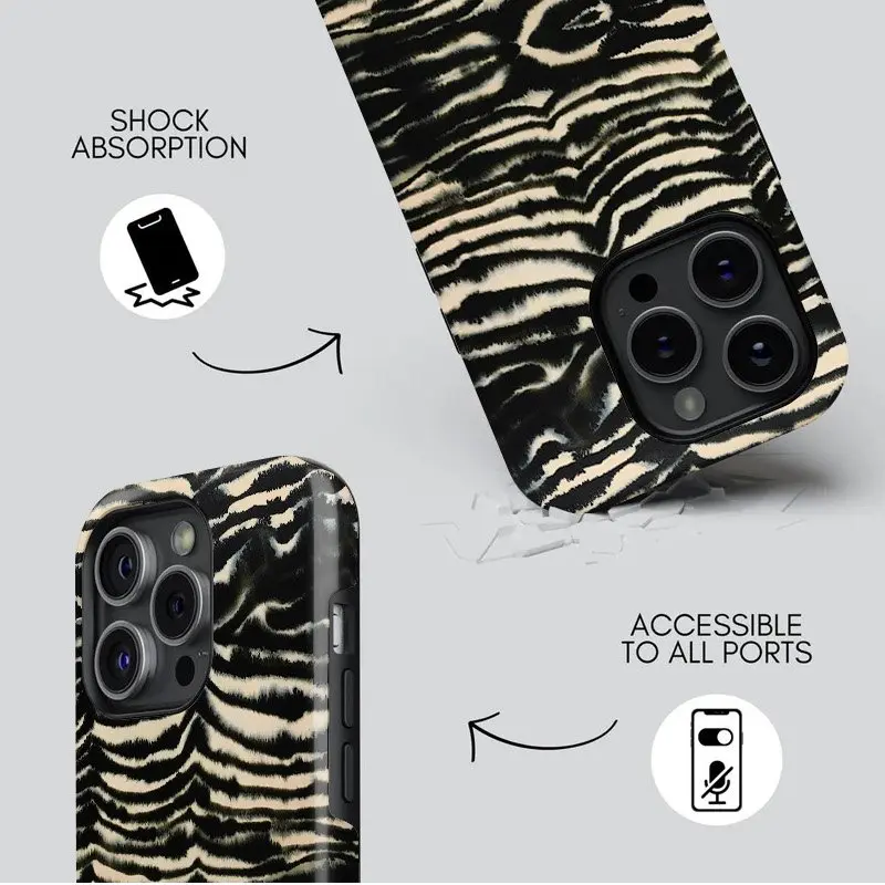 Zebra Print Protective Phone Case for iPhone17 Pro Max 16 15 14 13 12 Samsung 25 Ultra plus 24 23 22 Dual Layer Shockproof Cover with Polycarbonate Shell & TPU Lining Smartphone Protection Casing