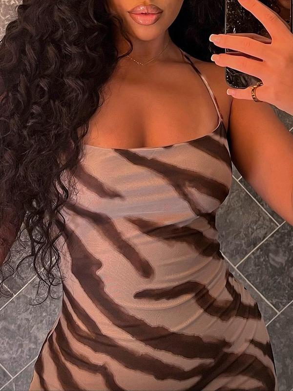 Women's Zebra Striped Print Cami Dress, Chic Casual Sleeveless Spaghetti Strap Long Dress for Party Club Dating Wear, Ladies Summer Clothes, Elegant Sleeveless Gown, Womenswear