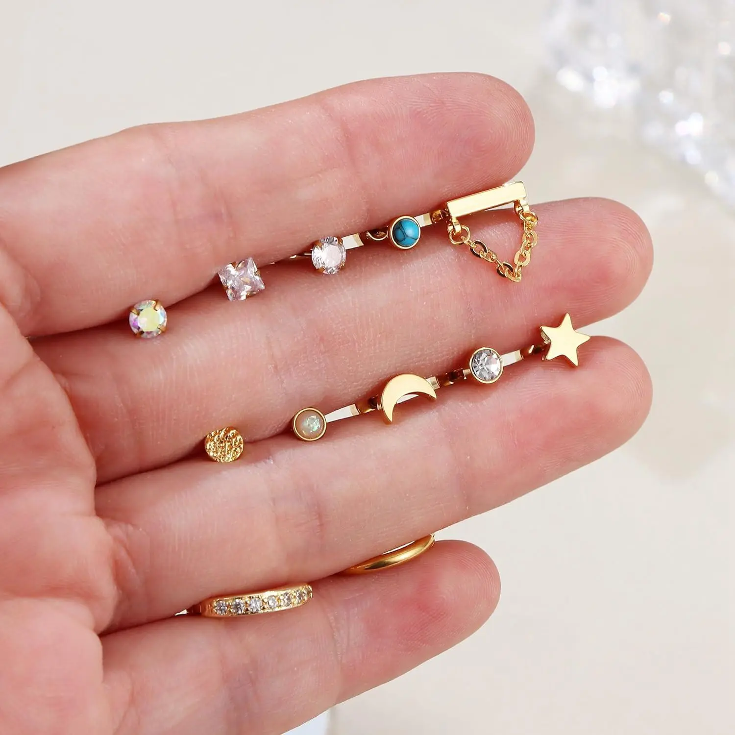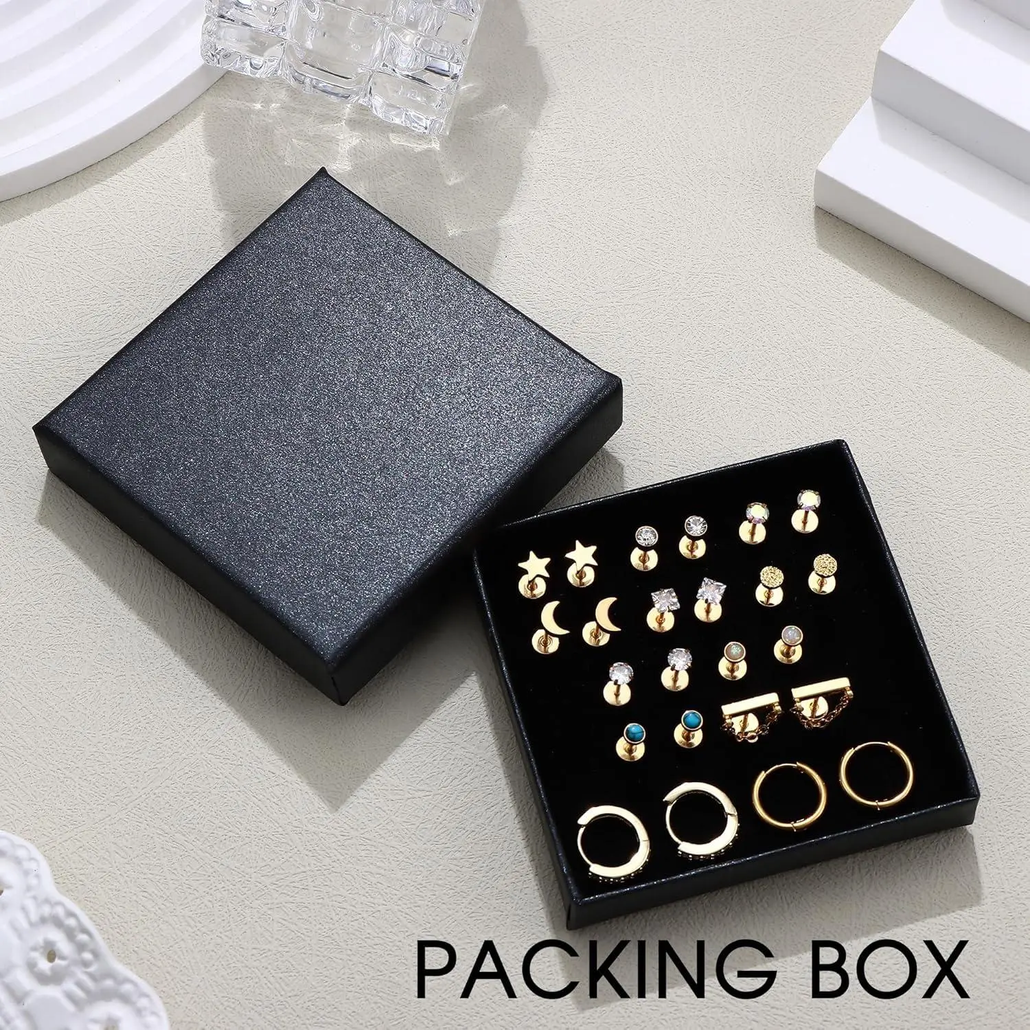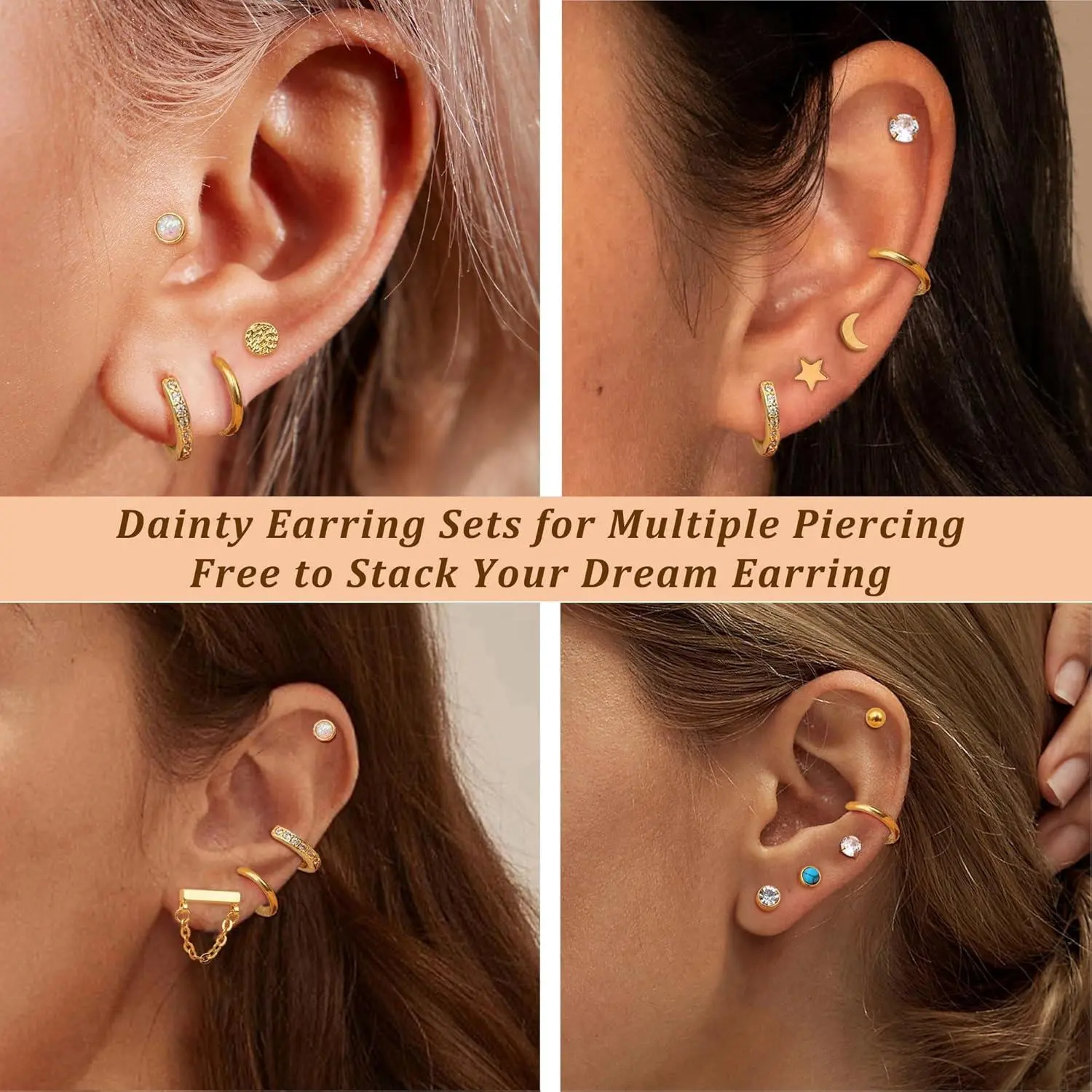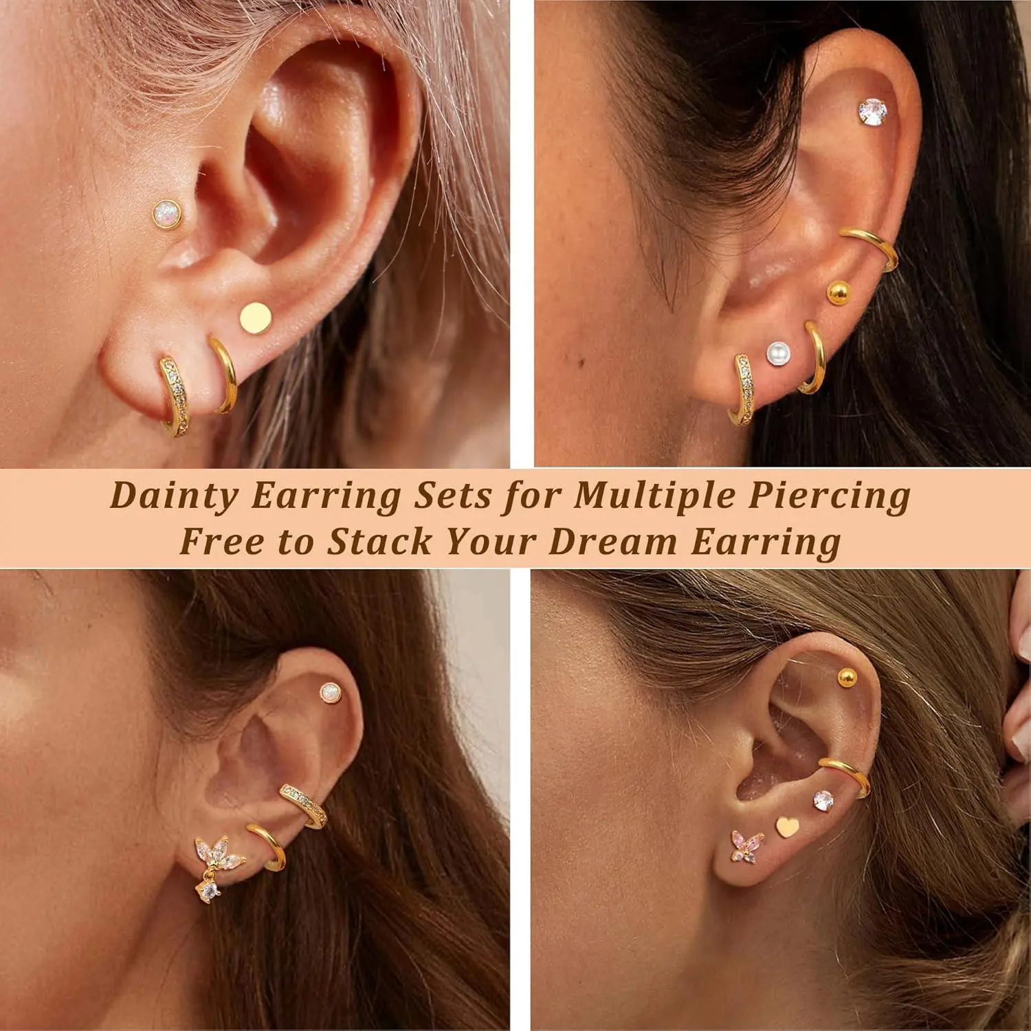 ·[Earrings Set for Multiple Piercing] 10 Pairs Flat Back Studs Earrings and 2 Pairs Huggie Hoop Earrings in One Order. Multiple Styles Flat Back Earrings, Hypoallergenic Earrings Set for Multiple Piercing, More Choice for Daily Wearing or Dress Up.