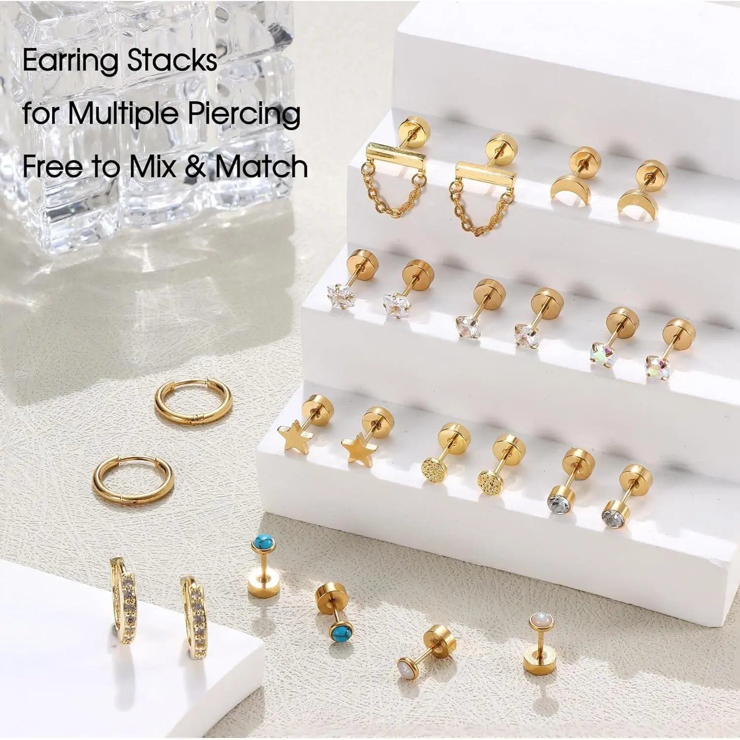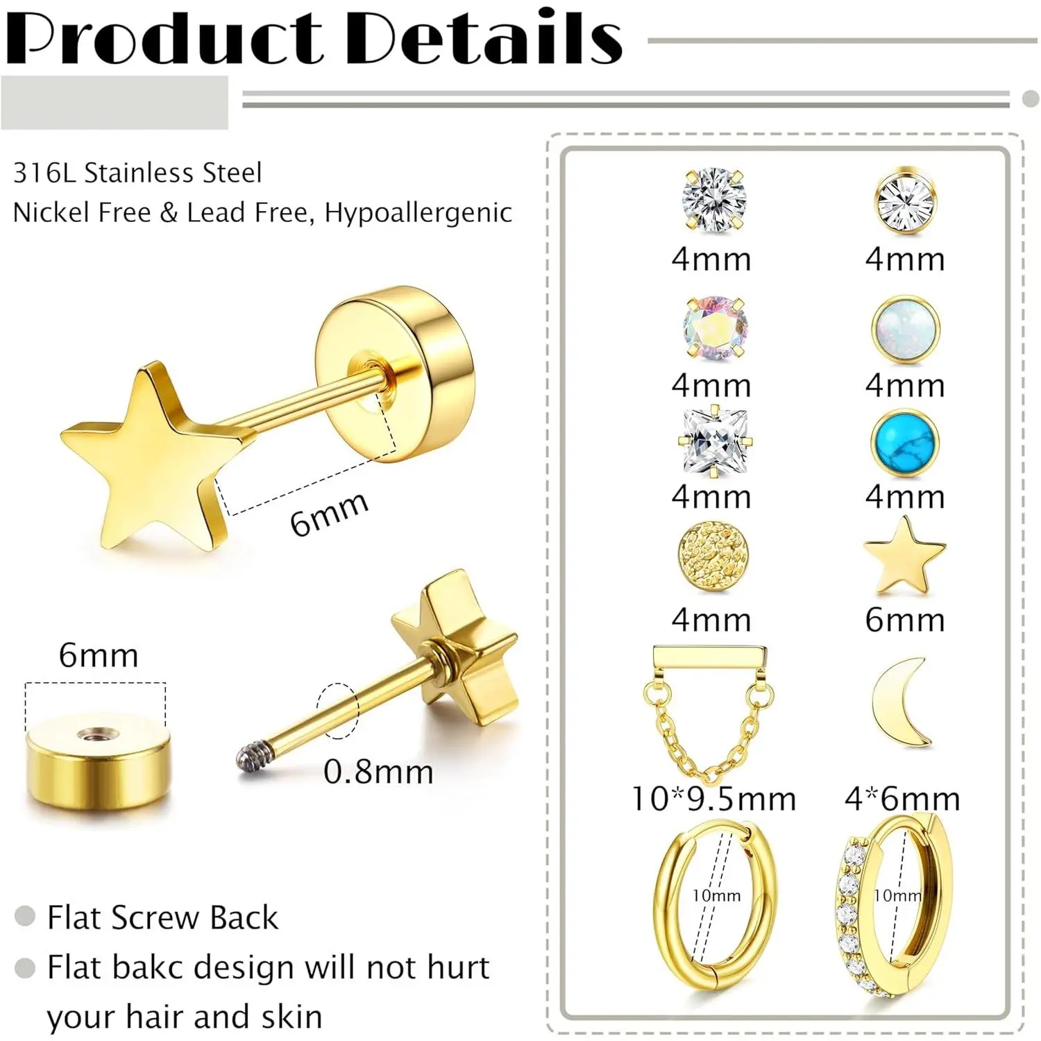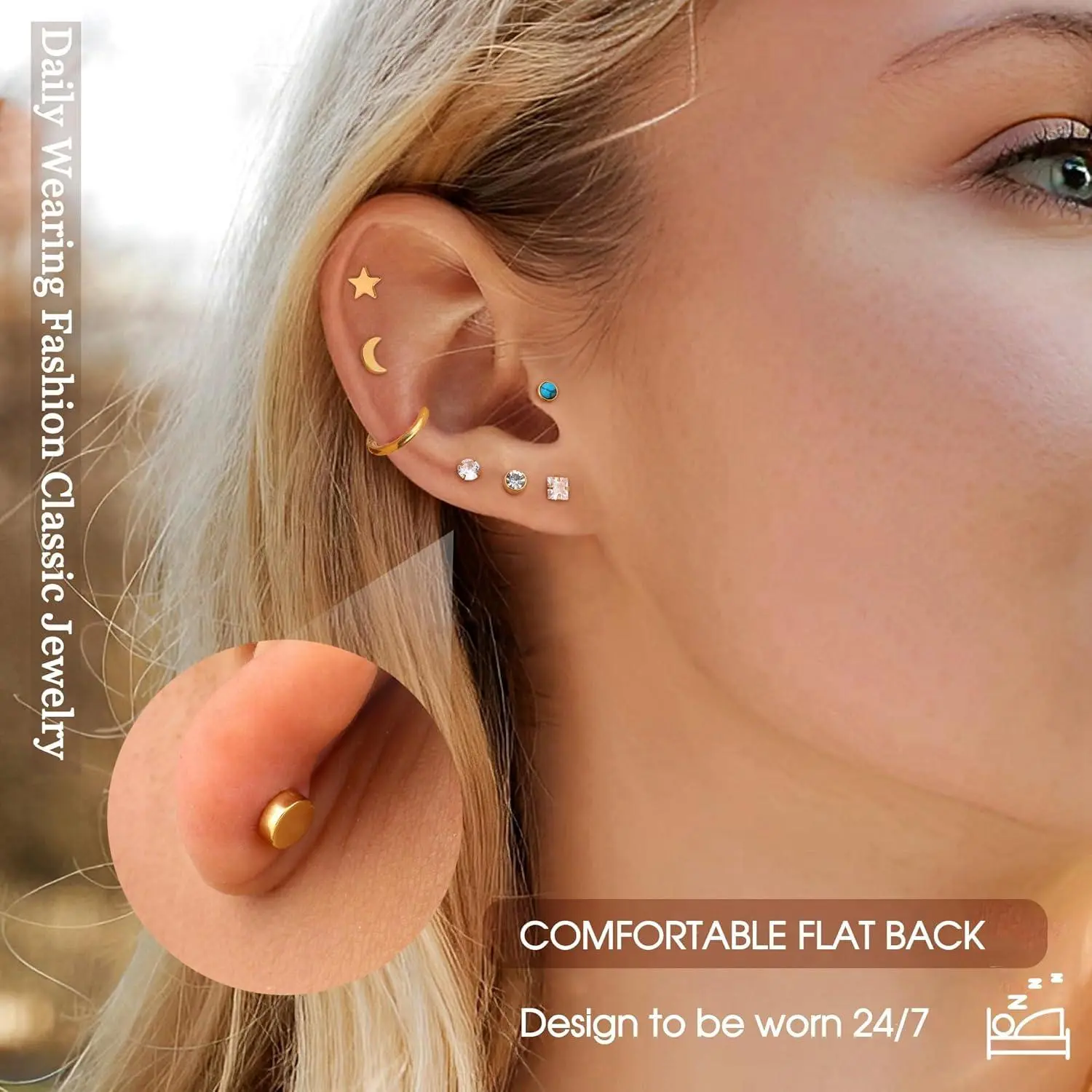 ·[Flat Back Earrings] Hypoallergenic Stainless Steel Earrings with Flat Back to Keep a Hold of Them to Screw On Easily. Safety Flat Back Studs Won't Stab Your Skins, Making Them Comfortable to Wear When You Sleepping, Working or Doing Sports.