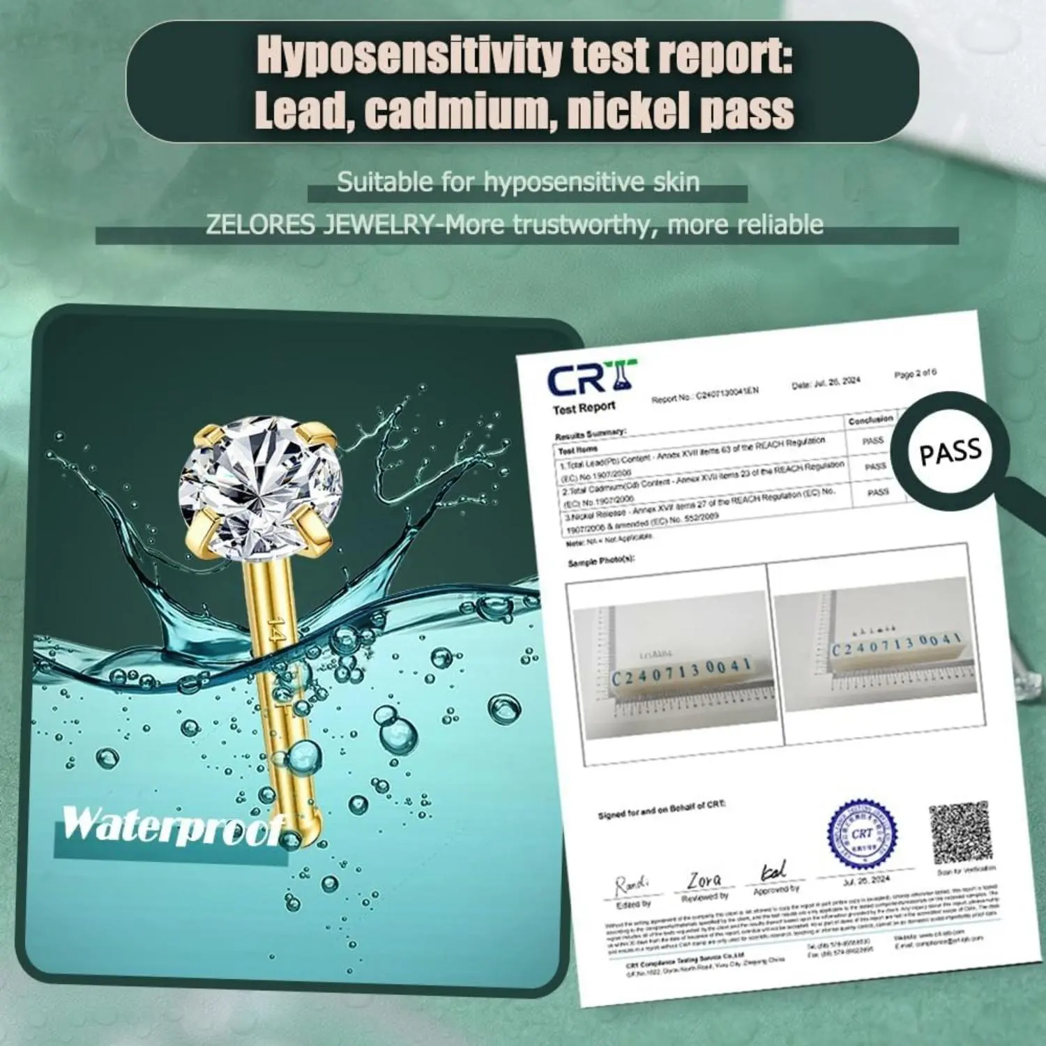 Gold Prong Set CZ Stainless Steel Nose Screw