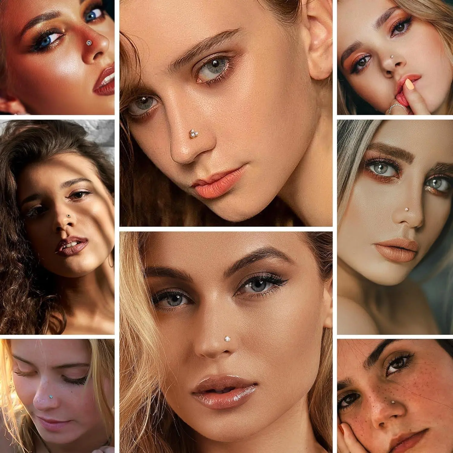 ZELORES 25PCS 20G 18G Threadless Nose Studs for Women Men 316L Stainless Steel Monroe Lip Rings Labret Stud Push In Nose Ring Nostril Piecing Jewelry Opal CZ Flat Back Nose Stud 1.5mm 2mm 3mm Gold Plated Small Hoop Earrings Set