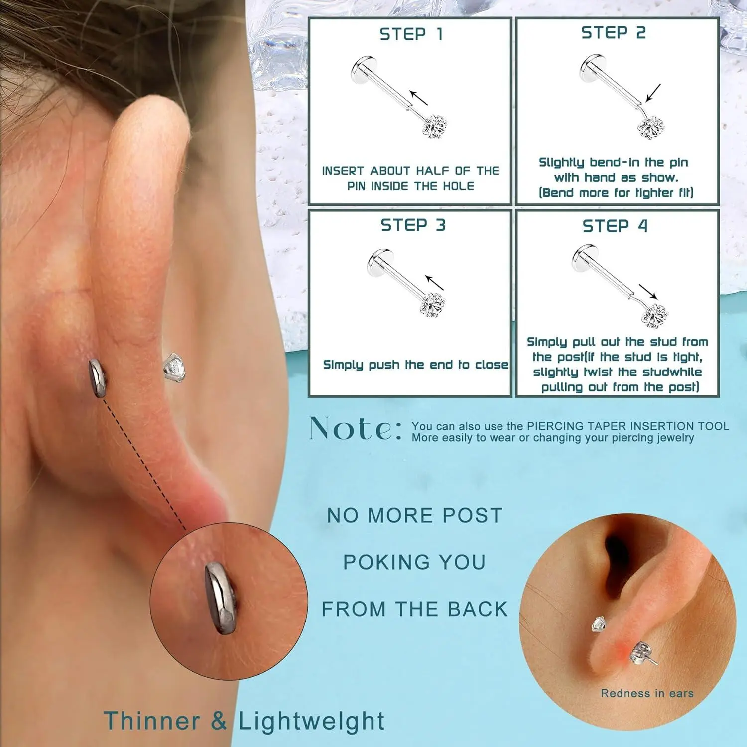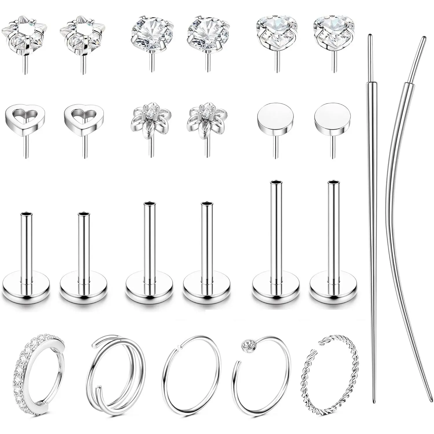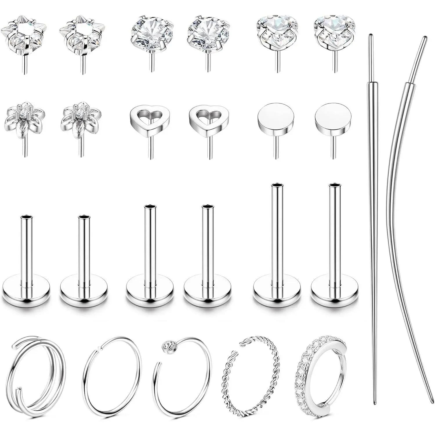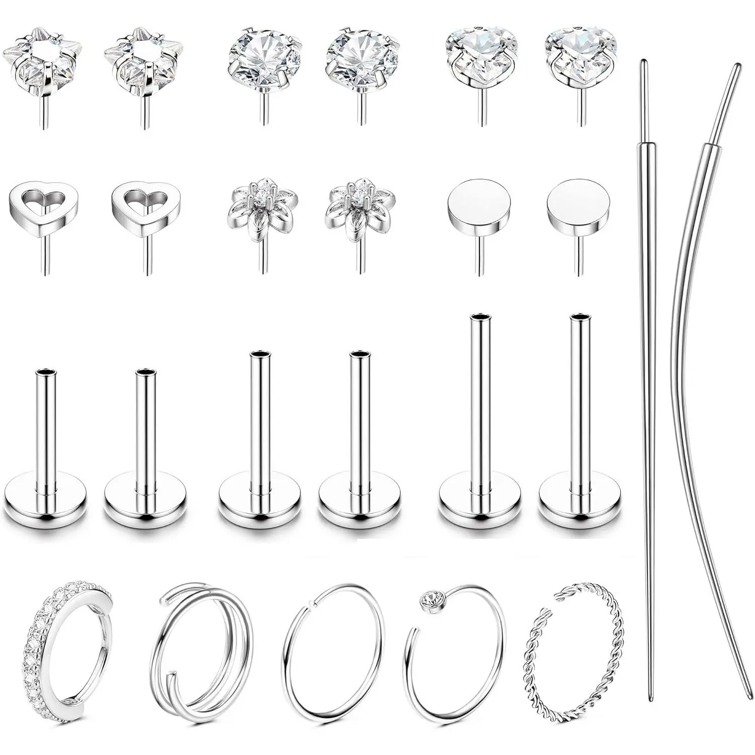 Due to the high demand for luxury hypoallergenic push in flat back earrings pack, craftsmen paved the way for superior design and high-quality craftsmanship that is in use today. We are a dynamic brand committed to the design of threadless flat back earrings for women. So that the dainty tragus helix cartilage piercing ewelry sends out the most charming luster. It is our honor to add your beauty.