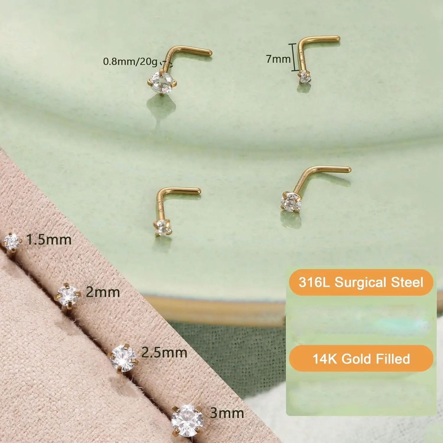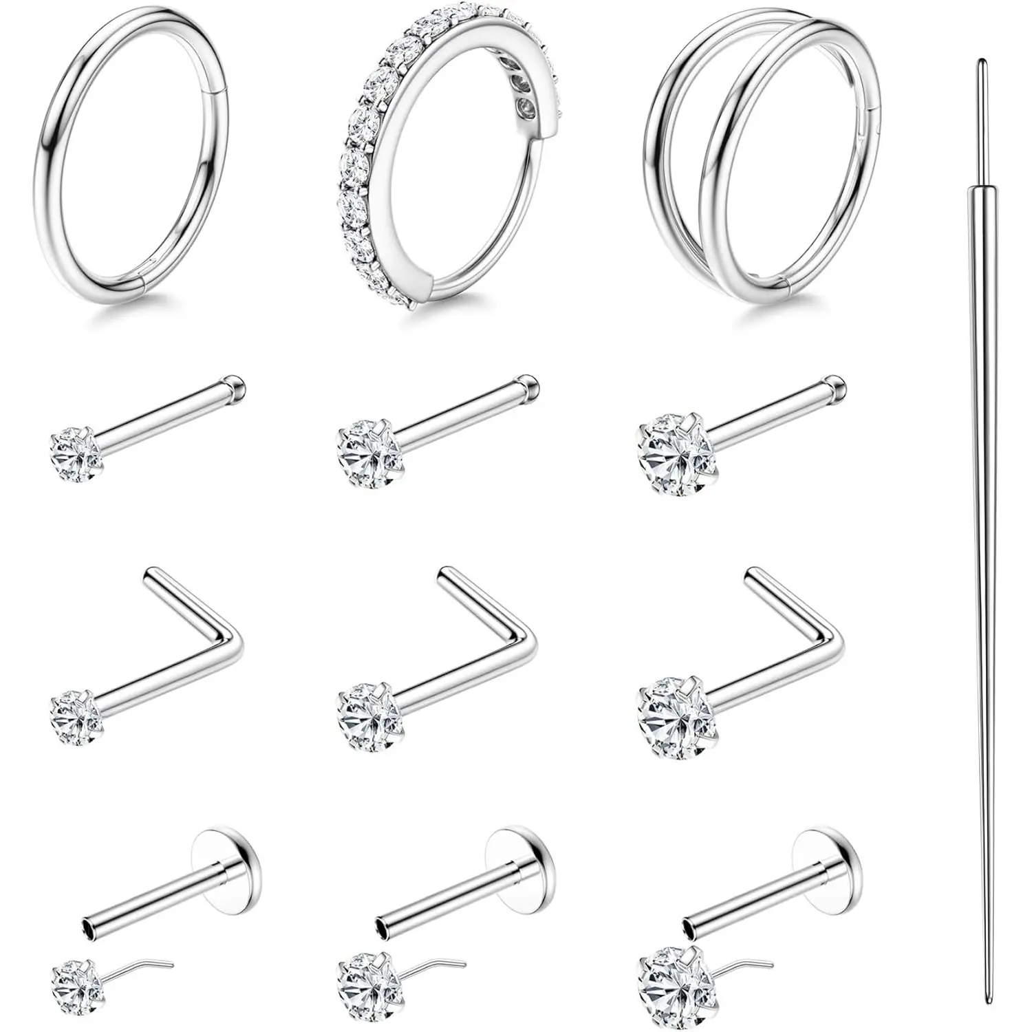 Variety of nose studs in different styles for daily wearing and multiple piercing. Flatback nose studs Can be used as nose rings, tragus earring, helix piercing, lip rings, monroe medusa piercing jewelry. High polished surface allows the product to maintain a good metallic luster for a long time.