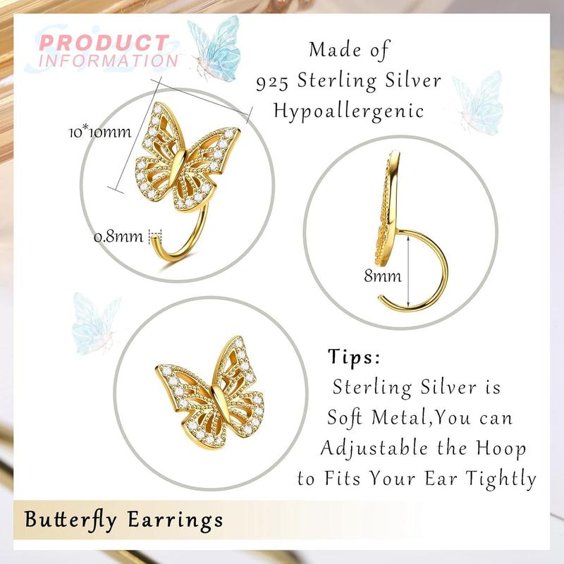 ZELORES 1Pair Sterling Silver Butterfly Hoop Earrings Gold Half Hoop Earrings Small Huggie Hoop Earrings Butterfly Earrings for WomenZELORES 1Pair Sterling Silver Butterfly Hoop Earrings Gold Half Hoop Earrings Small Huggie Hoop Earrings Butterfly Earrings for Women