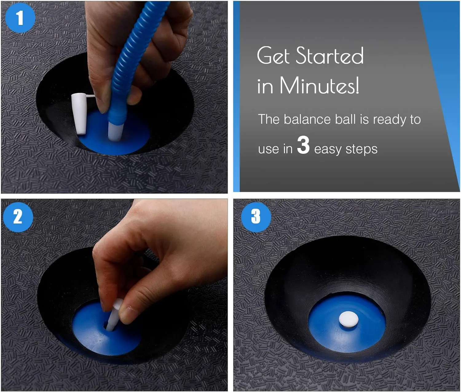 ·BALL PUMP INCLUDED: A complete combo, this half-dome stability ball comes with a complimentary foot pump that makes it easy to get fully inflated to 9.8” in under 5 minutes. The ball’s high-quality air valve prevents air leakage and extends service life