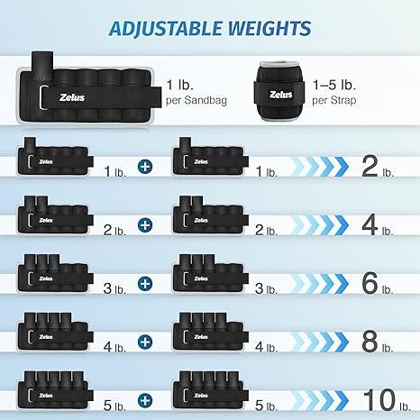 ·Customizable Resistance: Each leg weight for women and men features 5 removable 0.4 lb. sandbags, letting you add up to 2 lb. per ankle. Each leg weight for women and men features 5 removable 0.5 lb. sandbags, letting you add up to 2.5 lb. per ankle. Each leg weight for women and men features 5 removable 0.6 lb. sandbags, letting you add up to 3 lb. per ankle. Each leg weight for women and men features 5 removable 1 lb. sandbags, letting you add up to 5 lb. per ankle. Adjust the weight for a personalized workout, whether you're a beginner or a professional athlete