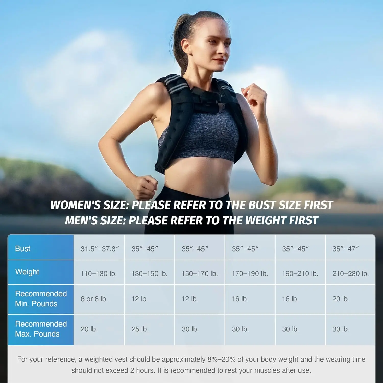 ·PREMIUM MATERIAL: This weight vest is built to last with durable neoprene rubber fabric, double-stitching, and weighted with iron sand for extreme durability through hundreds of different workouts.