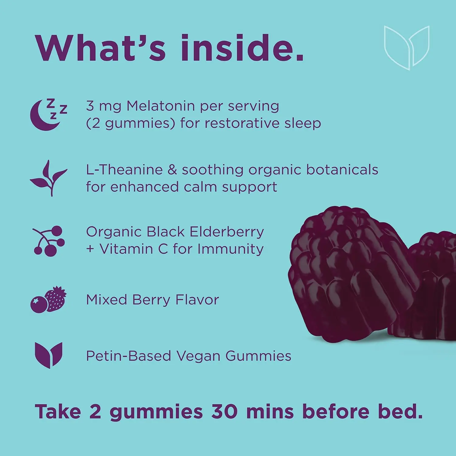 I love the berry taste! It taste just like candy & I actually look forward to taking it at night. I'm trying my best to be all natural and finding a melatonin gummie that is vegan, free of dyes, & allergens is right up my alley! I take two gummies 30 mins before I'm ready to go to bed and put on a good show and I'm out like a light. I have a hard time going to bed most nights and this product has helped me to fall asleep and wake up not feeling so grouc