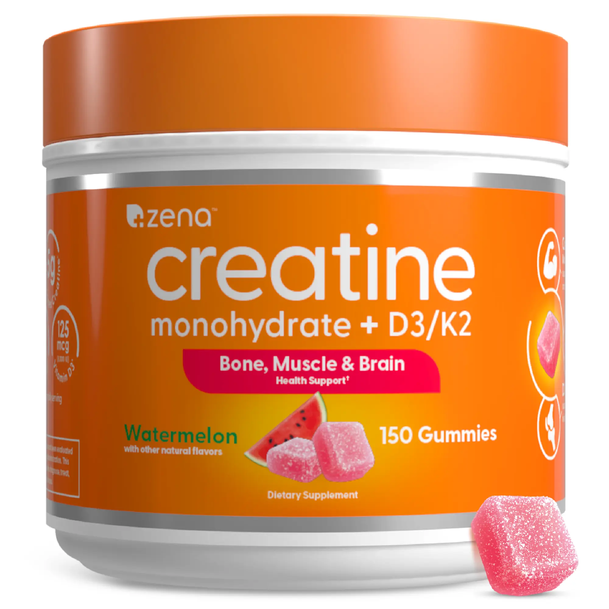Zena Nutrition Creatine Gummies provide a simple, great-tasting way to add creatine to your daily routine without powders or mixing. Each serving delivers creatine monohydrate alongside vitamins D3 and K2, nutrients commonly included in supplements designed to support an active lifestyle. Naturally flavored with watermelon, these gummies are easy to chew and convenient to take at home, at the gym, or while traveling. Manufactured in the USA at cGMP-compliant facilities and quality tested for consistency and safety, Zena Creatine Gummies are made for both men and women looking for an easy, everyday creatine option.