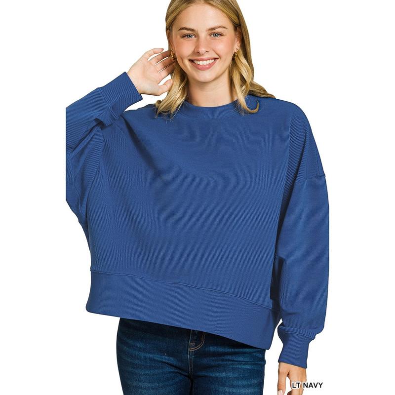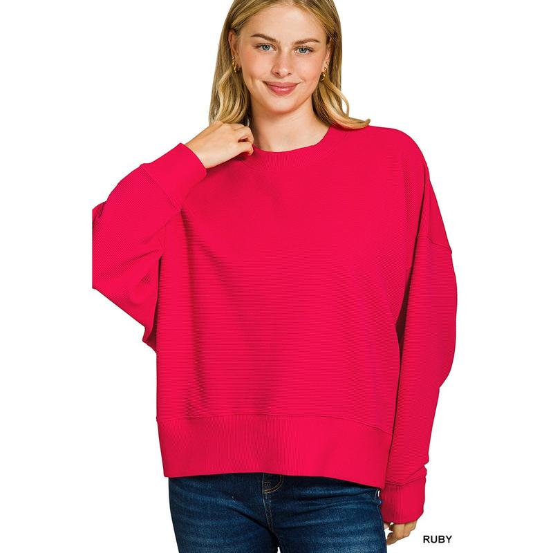 Ribbed Balloon Sleeve Pullover