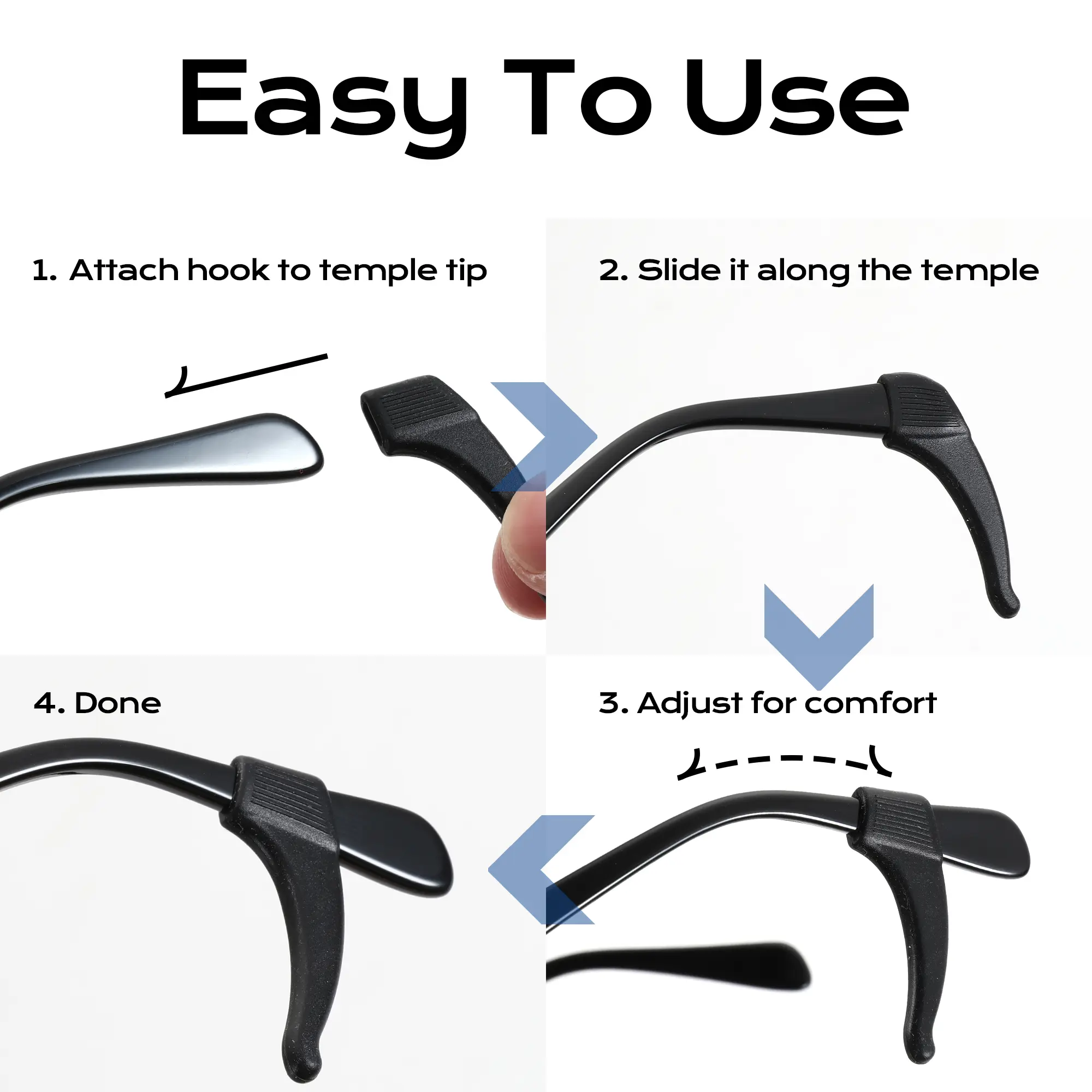 My glasses are pretty heavy and used to slide down nonstop—super annoying. These grips really help keep them in place, even when I'm moving around or sweating a bit. Easy to put on and surprisingly comfy. Glad I gave them a try!