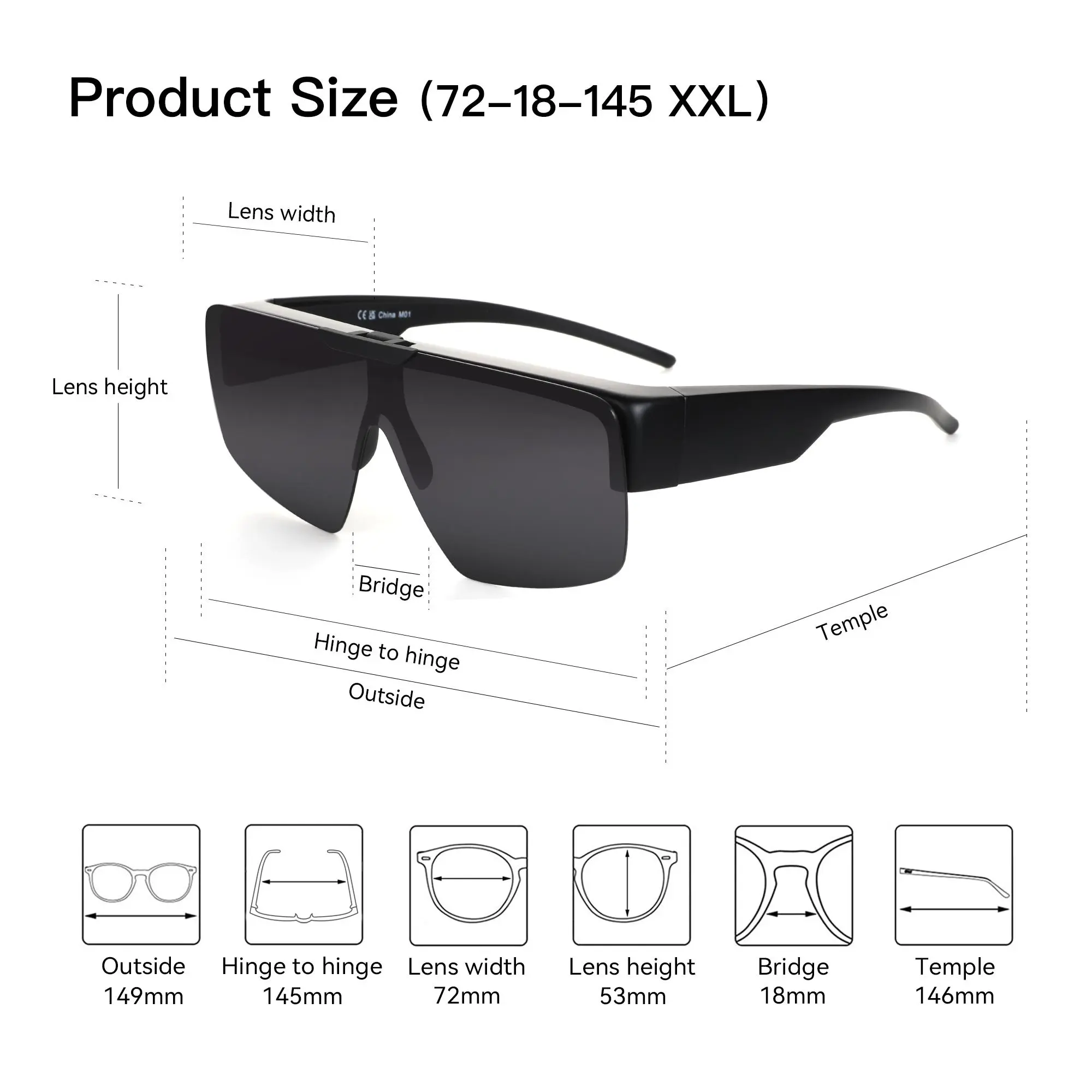 The ZENOTTIC Fit Over Sunglasses feature polarized lenses with full-spectrum UV400 protection. Ideal for high-glare environments, these shades enhance clarity and reduce eye strain. Perfect for driving, hiking, cycling, or city exploring. Stay confident and stylish wherever the sun shines. Stay safe and fashionable in any setting.