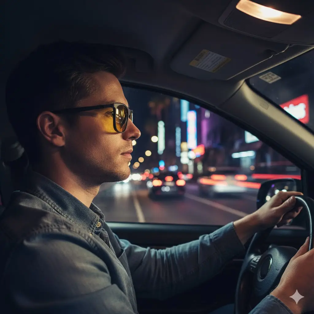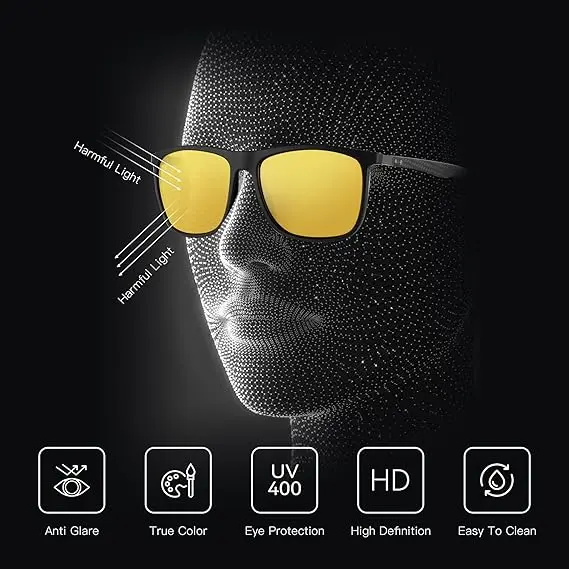 Anti-glare polarized yellow lenses improve visibility in low-light conditions. Reduce glare from car lights, enhancing night driving performance. Ideal for driving at night, rainy, or foggy days.