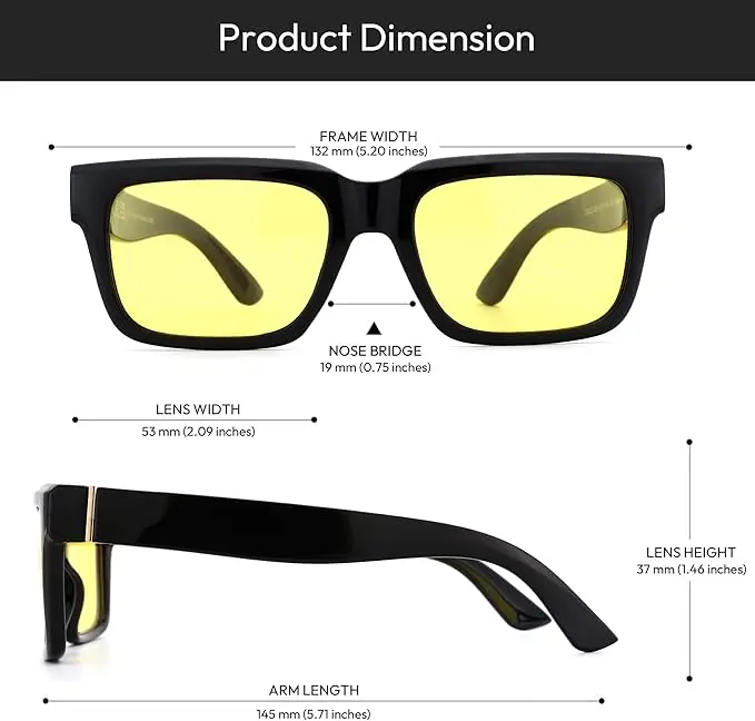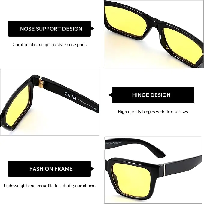 These sunglasses are perfect for driving and everyday wear. The yellow lenses make them ideal for night vision. Stay stylish and protected with ZENOTTIC Rectangle Sunglasses.