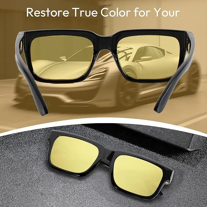 ZENOTTIC Rectangle Sunglasses are perfect for men and women. These sunglasses offer polarized UV400 protection, safeguarding your eyes from harmful UV rays. Ideal for driving, the yellow lenses enhance night vision, providing better visibility. A classic and trendy choice, these sunglasses are versatile for any occasion.