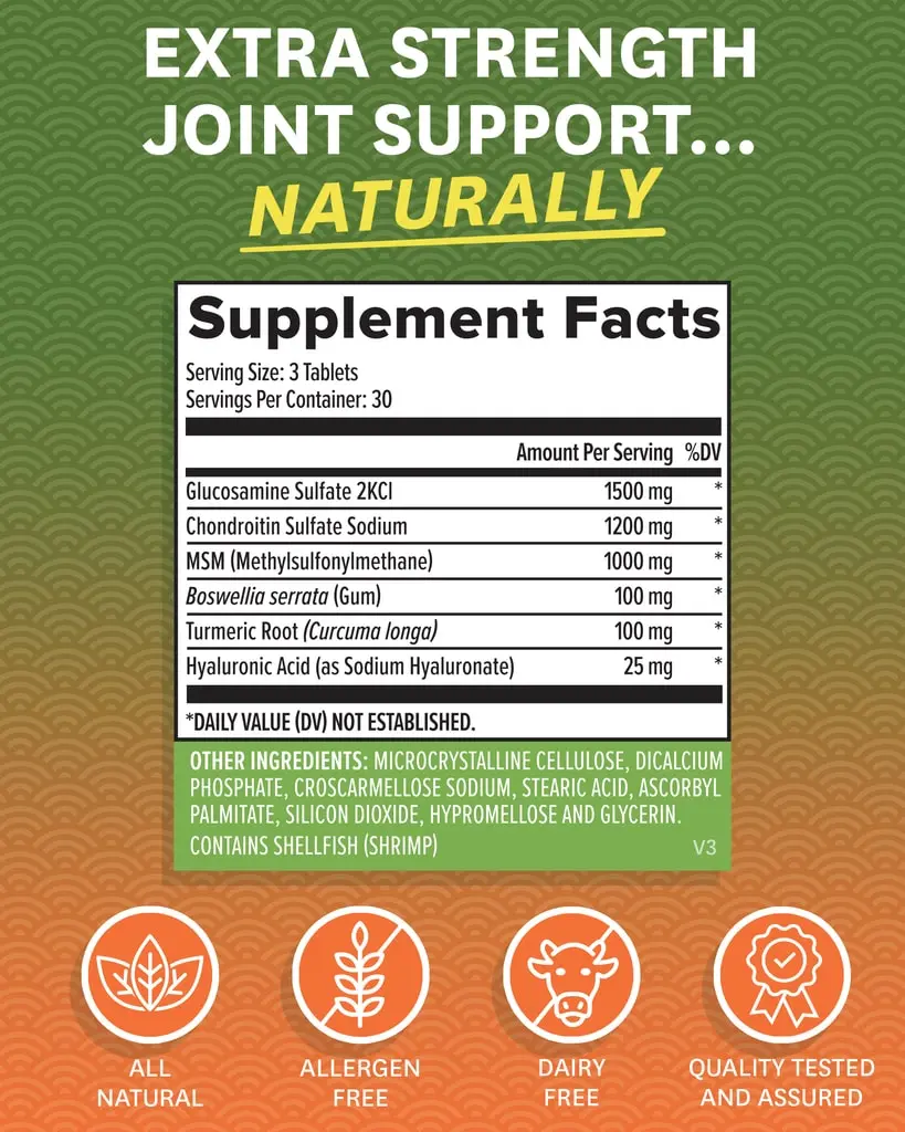 ·Extra-strength 1500 mg of glucosamine for joint health
