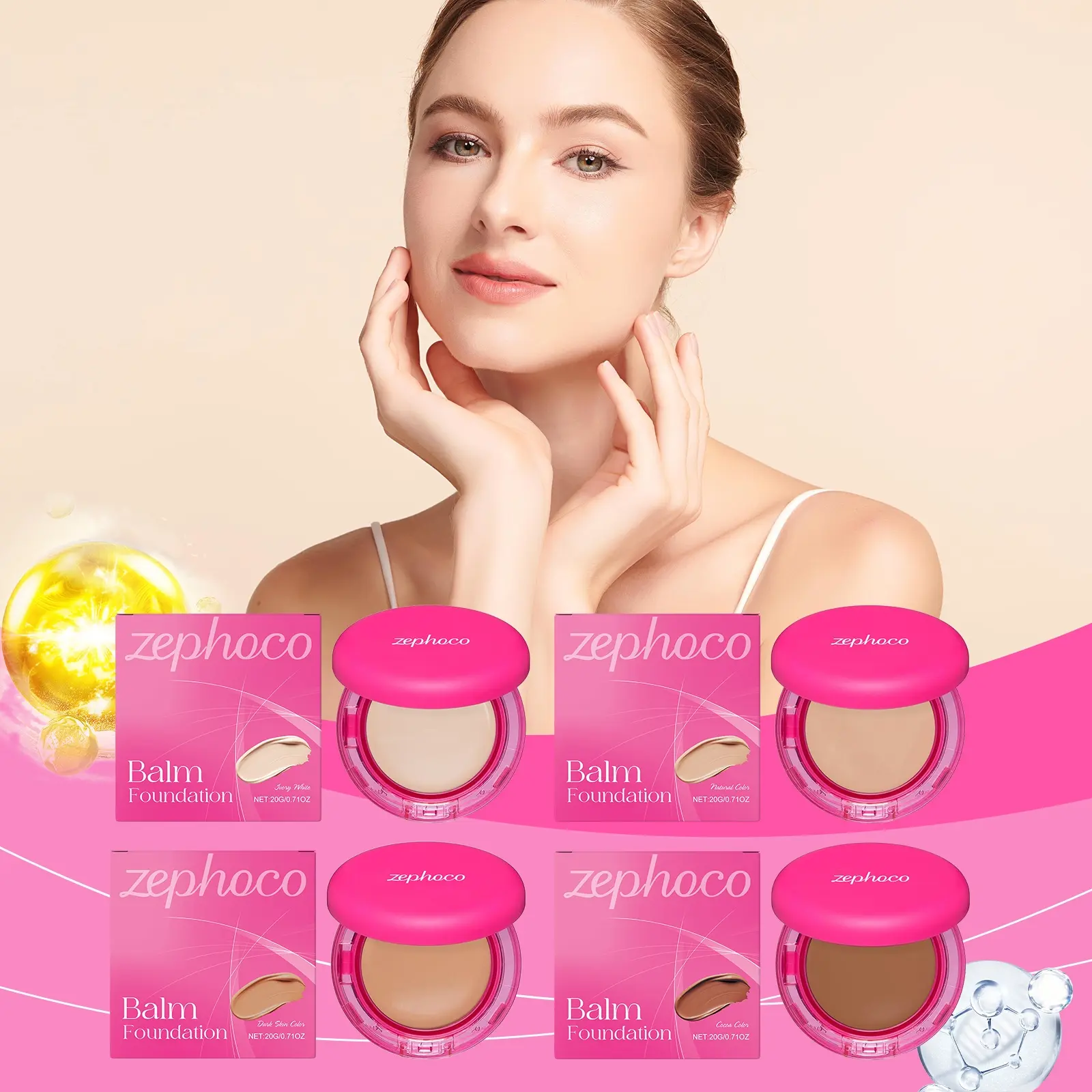 5. Zephoco Hydrating Foundation Balm, Lightweight & Flawless Coverage, Moisturizing Formula for Oily & Dry Skin Types, Long-Lasting Makeup Base