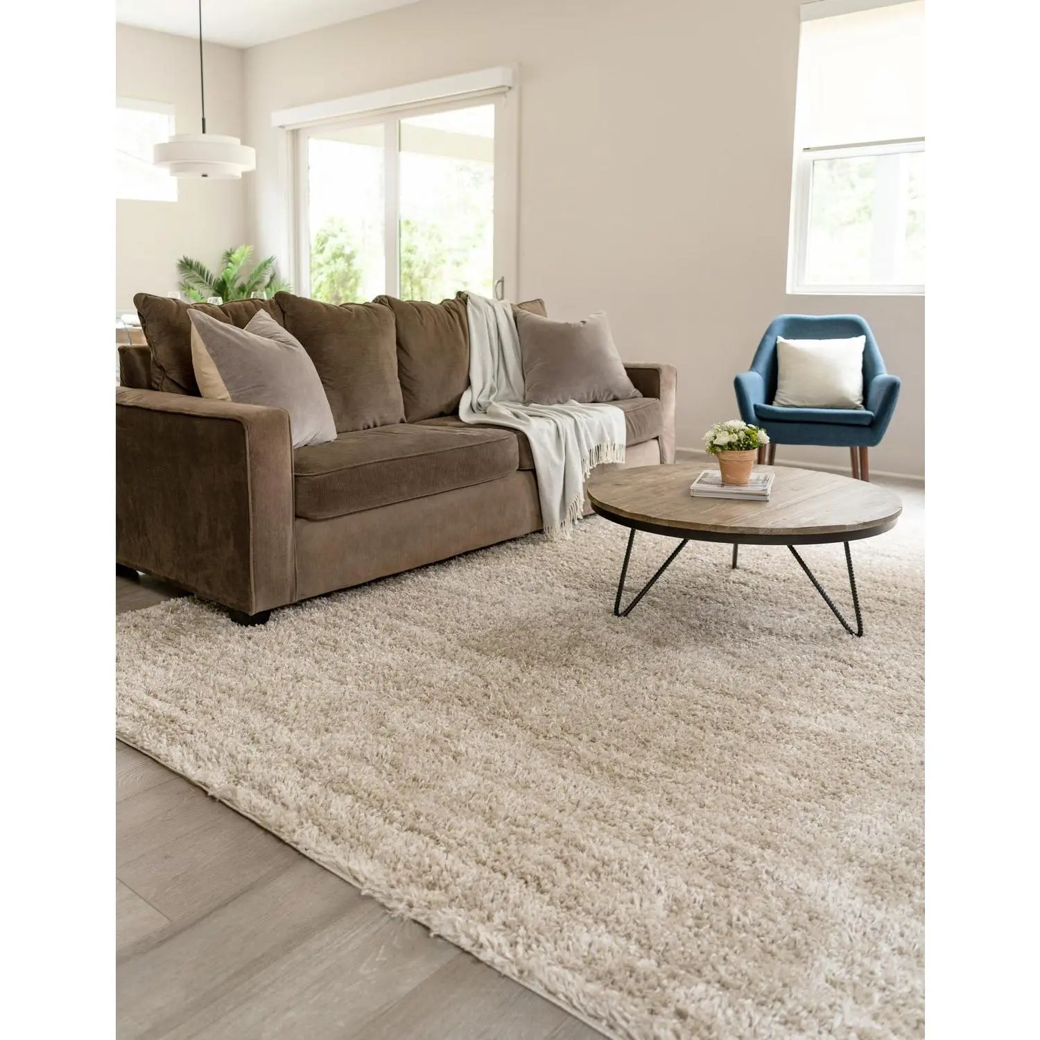 The rug's subtle shag pattern adds an understated elegance, making it a perfect fit for contemporary, Scandinavian, or minimalist interiors. Its neutral tone is an ideal backdrop for vibrant accents or earthy tones in your decor.