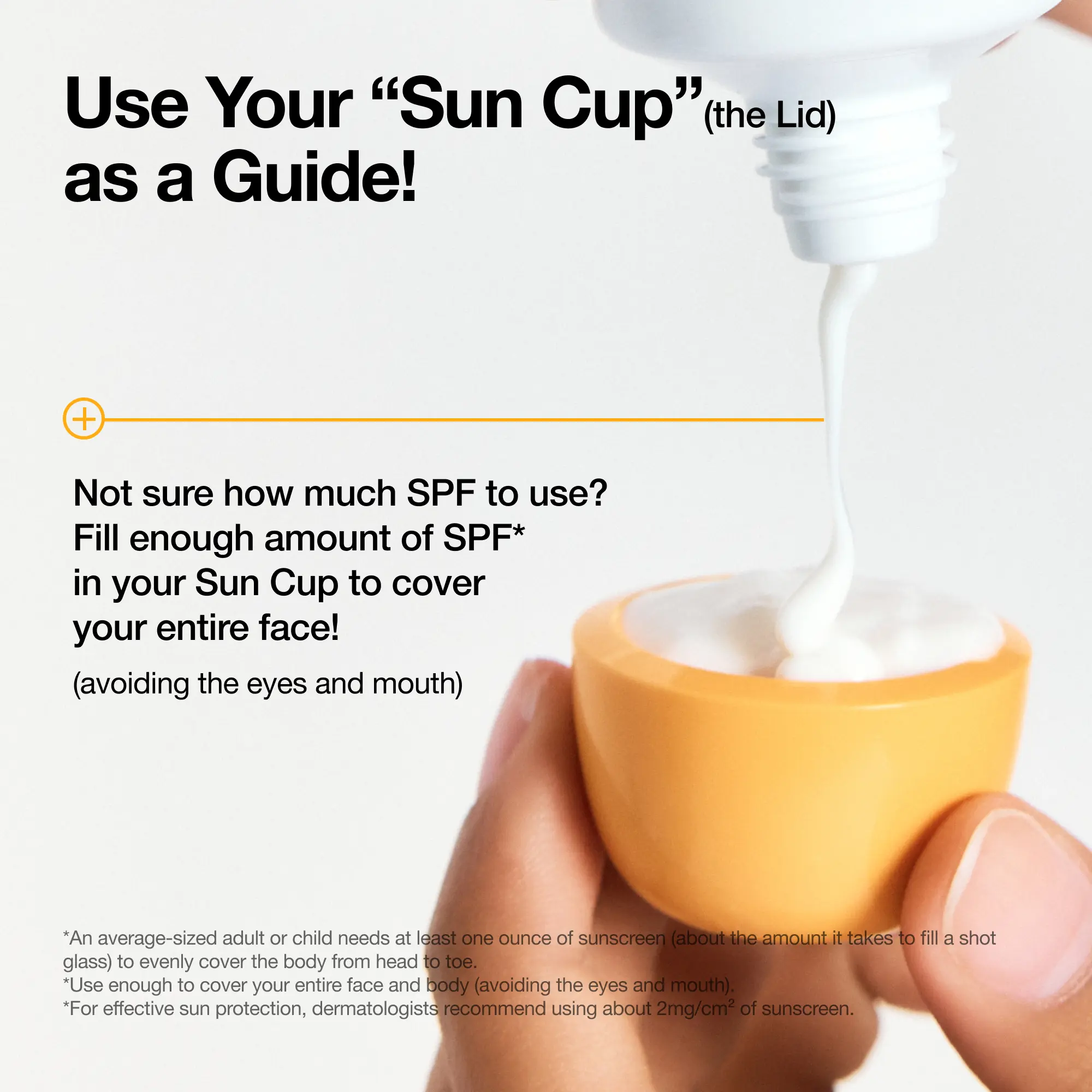 ·Use the “Sun Cup” (the lid) as a helpful guide for how much sunscreen to apply.