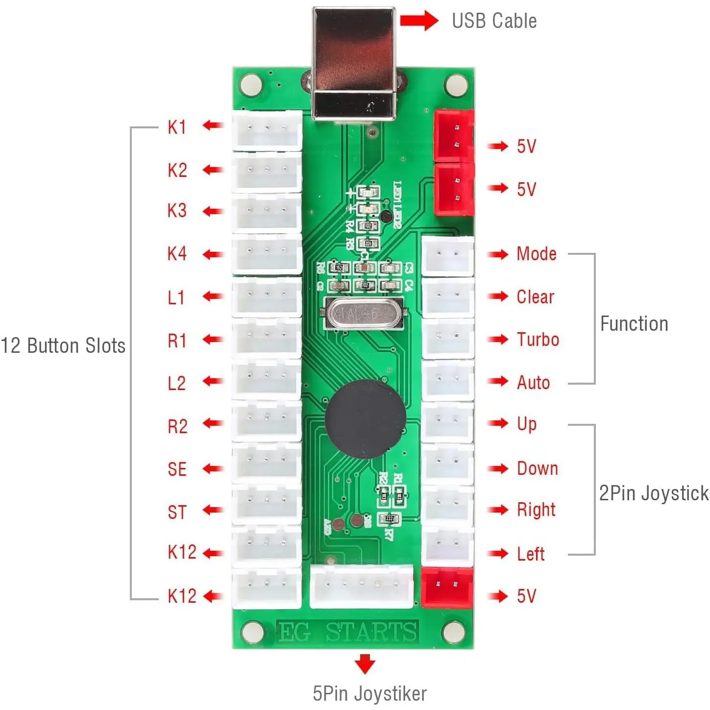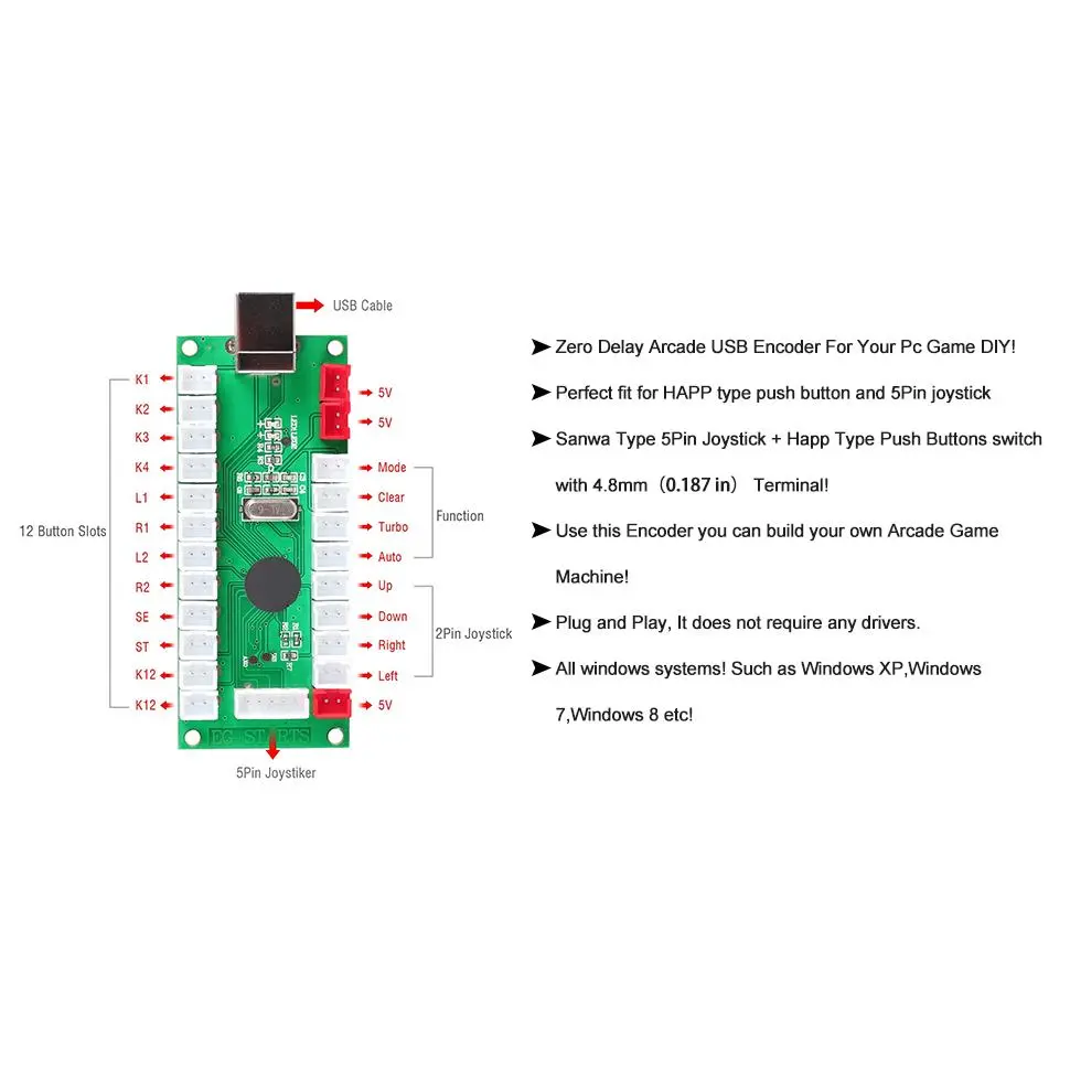 Zero Delay USB Encoder for 2-Player DIY Projects.3 x 5V Output.No Need Sources For LED Joysticks / LED Chain / LED Buttons.Plug and Play,% Zero Delay Pc Encoder!High Quality!for Raspberry Pi, PC, Windows,, Mac, Widely used for Console DIY Projects.Build your own Machine. Supper Easy Installations.