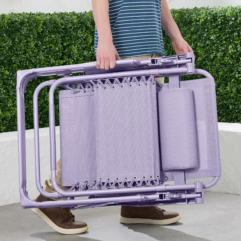 LOCKABLE RECLINING SYSTEM: Smoothly glide into an ergonomic zero-gravity position with removable elastic cords that immediately adjust to your body's weight
