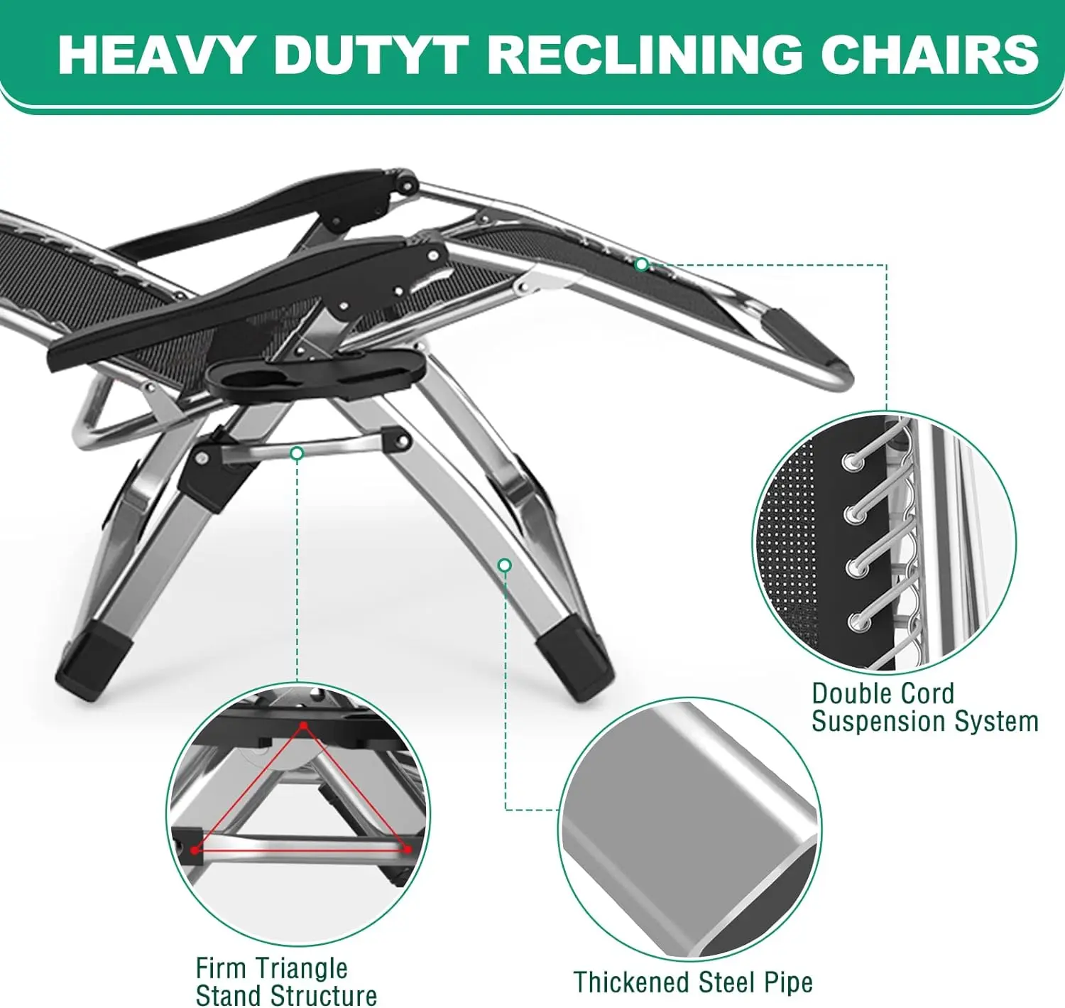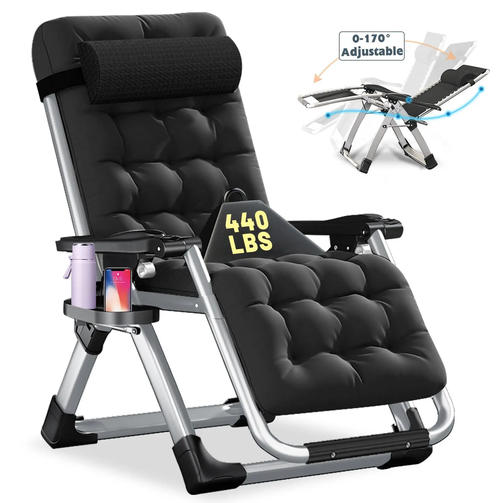 Our Zero Gravity Chair supports up to 440 lbs. The thickened steel pipe ensures stability, preventing shaking or collapse. The upgraded fabric enhances comfort, making it ideal for extended use. This robust structure guarantees safety and durability, perfect for heavy users. Enjoy a personalized seating experience every time.