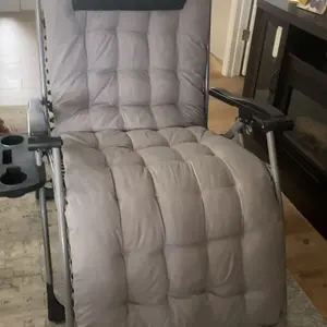This chair is AWESOME 😎 Comfortable, got for my husband. Lots of room, don't feel like you're crammed in a little chair. Table attachment is a great bonus 😁