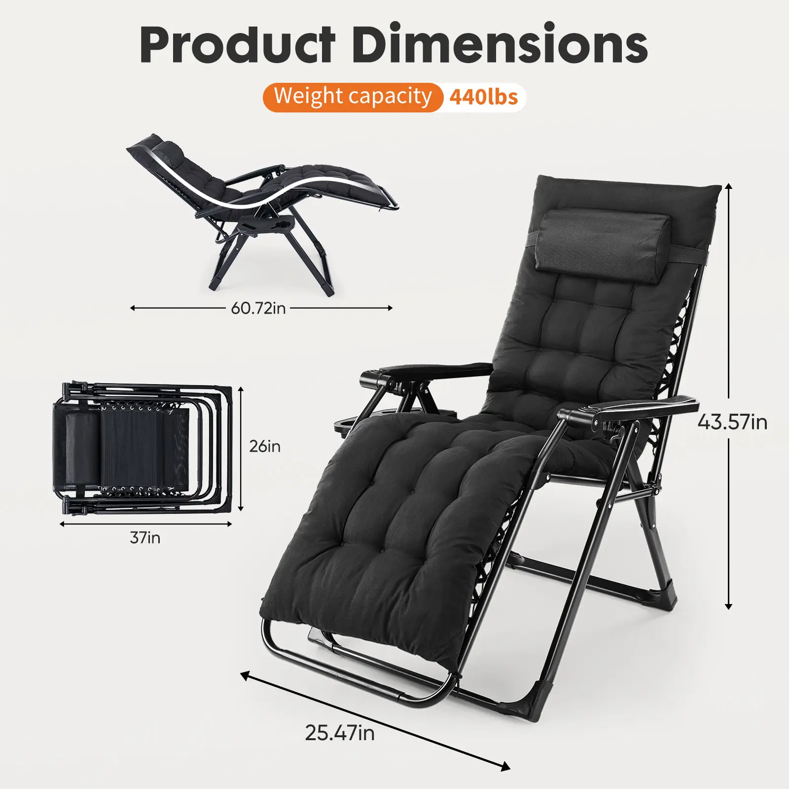 ·【Removable Cushion, Cup Holder Pillow】The zero gravity lounge chair with a Removable cushion provides enhanced softness and comfort. The cushion is detachable, ensuring good ventilation even in the summer, making it suitable for use in both winter and summer. The multifunctional cup holder provides storage for items such as phones, water bottles, keys, and more. The upgraded padded pillow provides you with a comfortable experience.