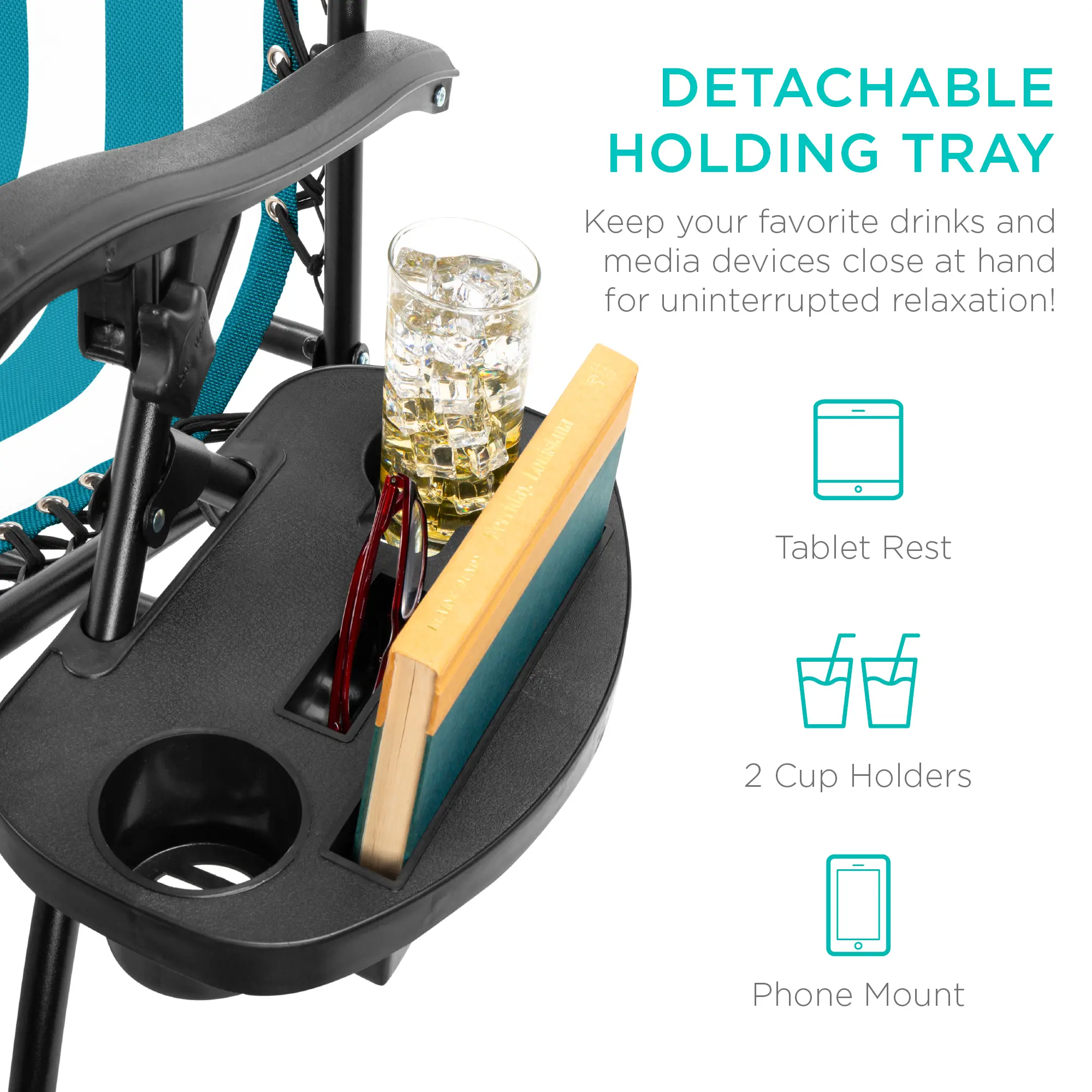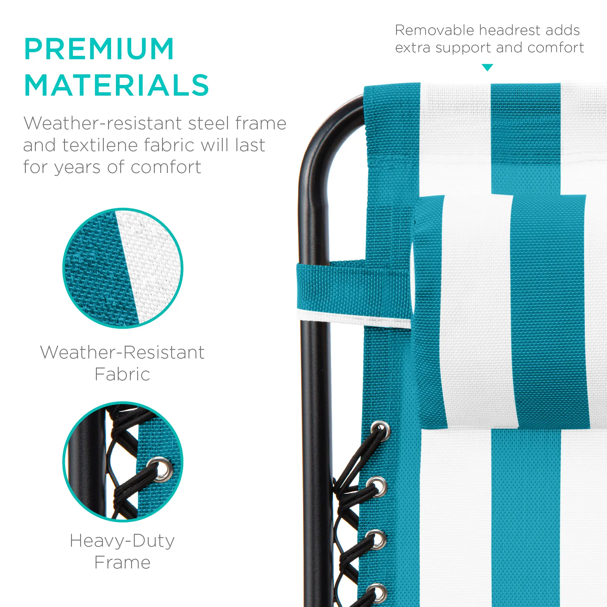 Includes: (2) Zero gravity chairs, (2) Cupholder trays, (2) Headrest pillows