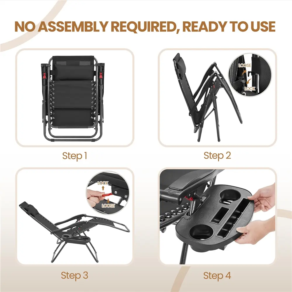 10. Out of the Box & Easy Storage: This outdoor zero-gravity recliner set comes assembled, which is ready for use upon receiving. Its foldable structure makes it effortless to be kept in your garage or car trunk