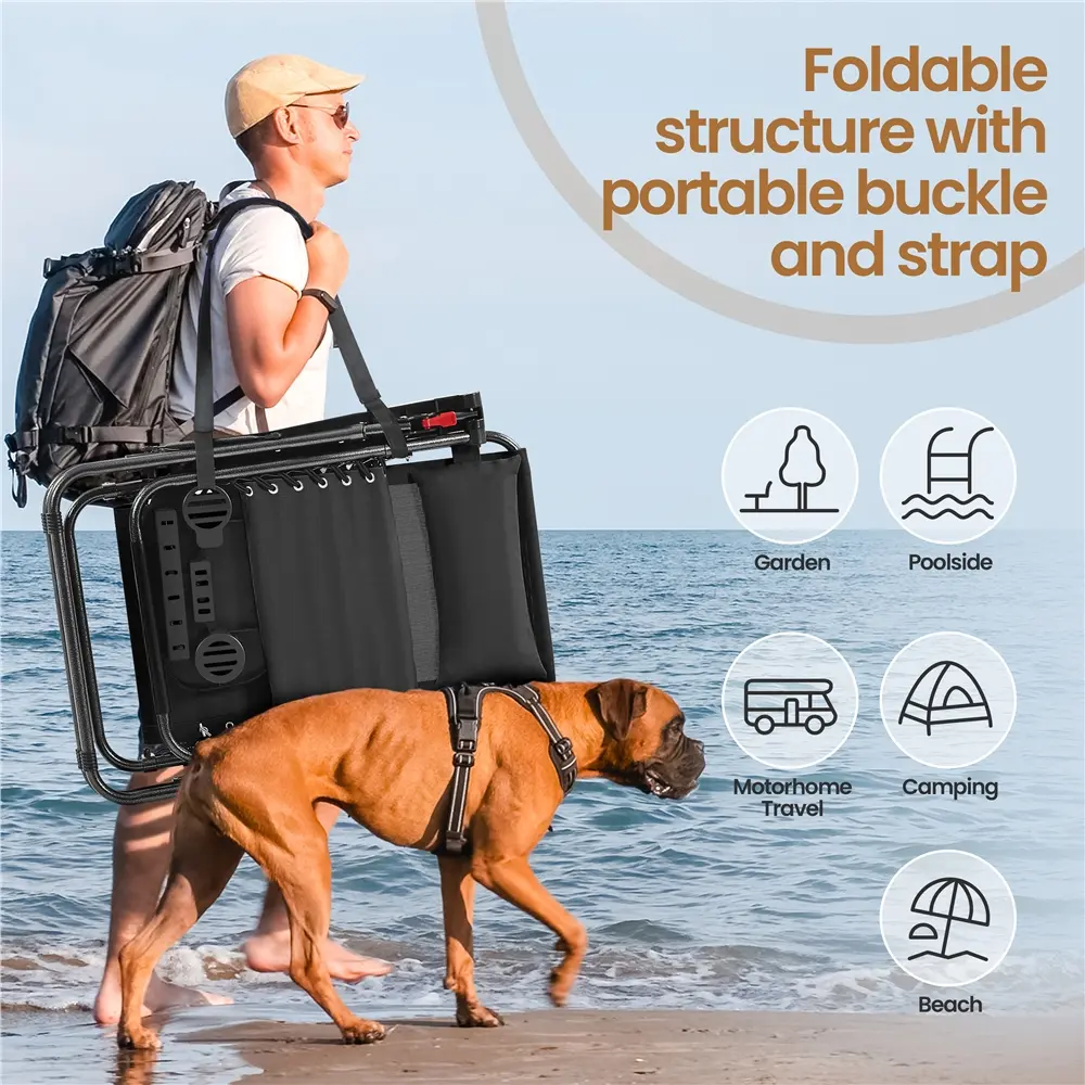 7. Unfixed Pillow: A padded pillow comes with this outdoor folding lounge chair. It has an elastic strap on the back surface, allowing you to move it along the backrest according to your height and posture, such as below your head as a headrest or behind your waist as a lumbar support pillow
