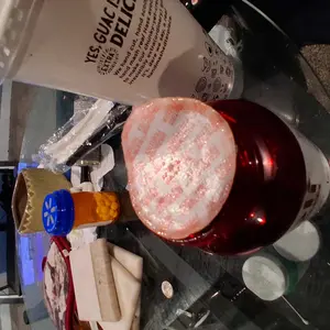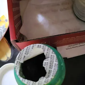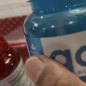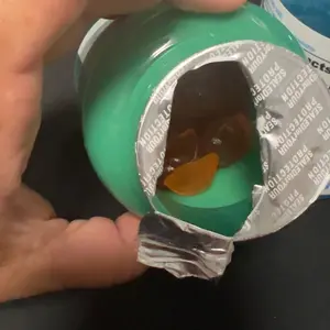 The product is bought was opened and had a sticky substance all over the top of the bottle and was open already and the cap was cover in a slimy sticky substance