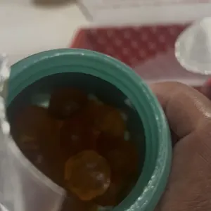 Came melted was super sticky and looked like it was melted a bit also the taste weren't like described they were not delicious at all like advertised and the smell wasn't great either not satisfied at all