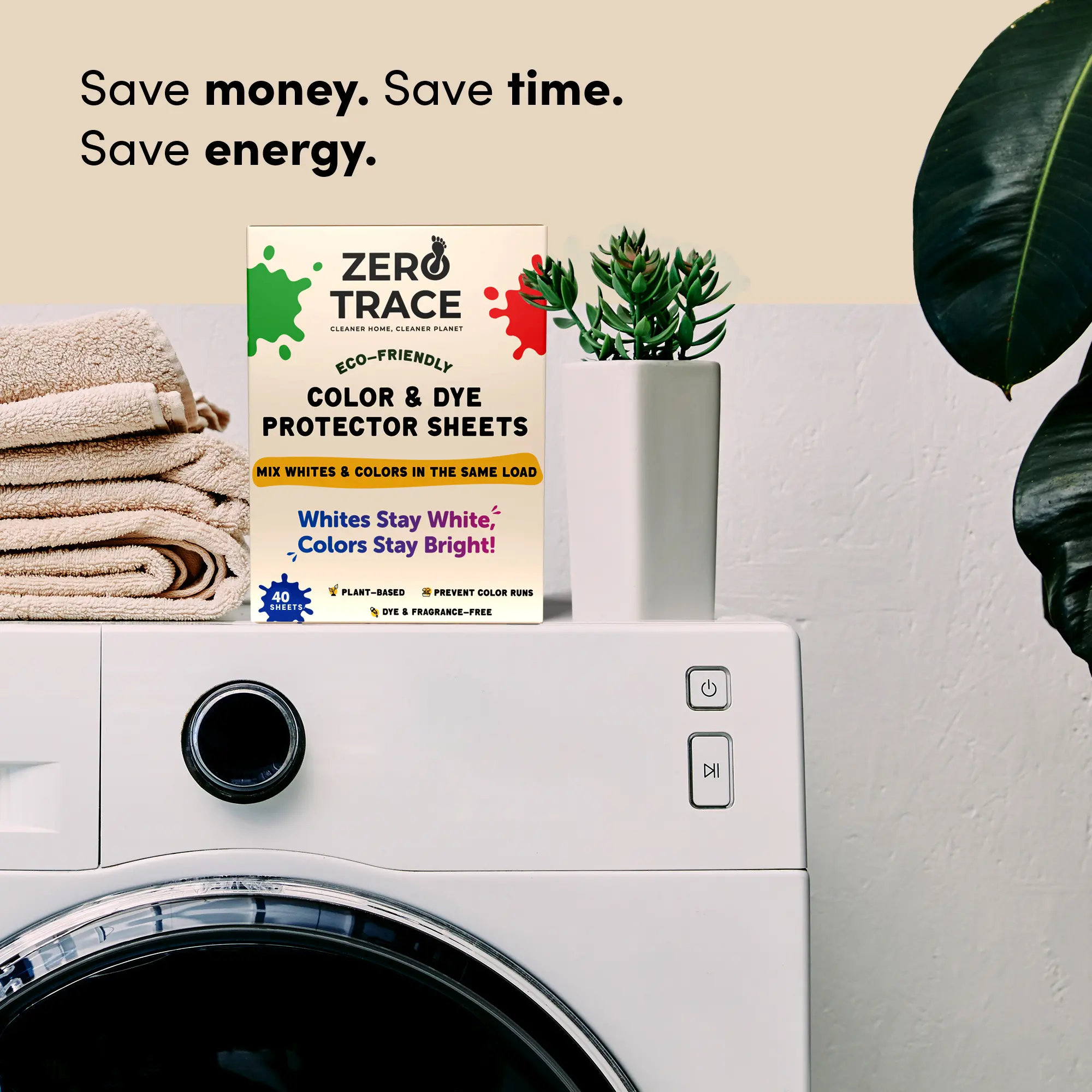Zero Trace Eco-Friendly Color Catcher Laundry Sheets - 40 Count - Prevents Dye Transfer & Keeps Clothes Original Color - Fragrance-Free Plant-Based - Ideal for Mixed Washes Household