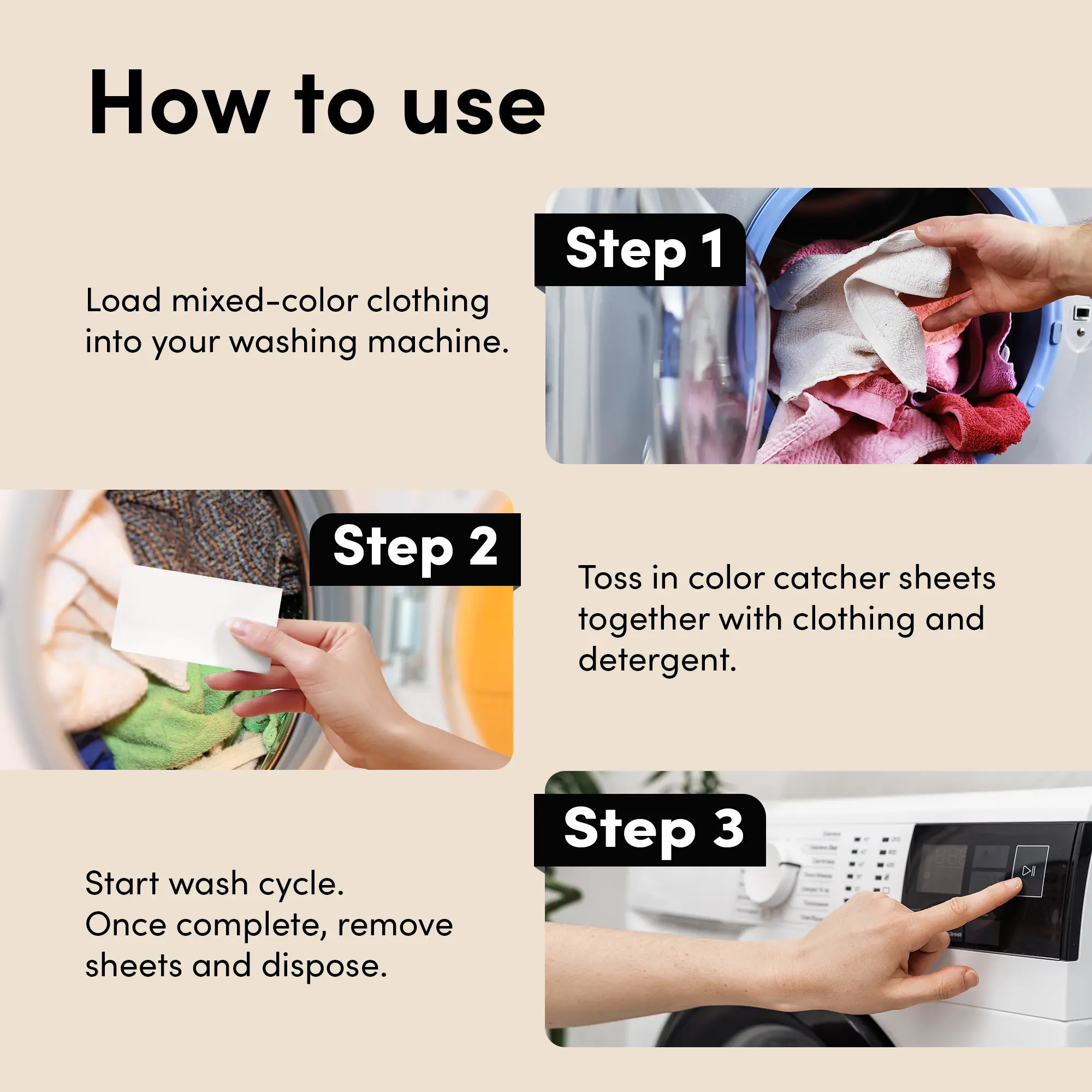 I seriously didn’t know these existed until now and I’m never going back. I used to separate whites and colors every single time because I’ve ruined way too many shirts with color bleeds. Tried these sheets, threw in a mixed load with white tees and red towels (risky, I know!) and EVERYTHING came out perfect.