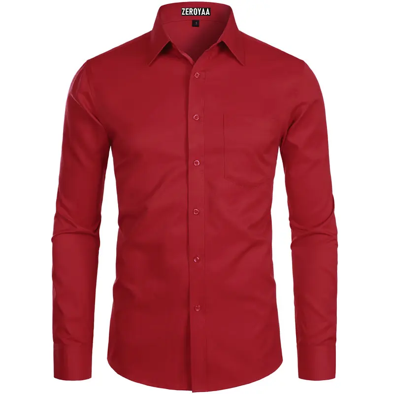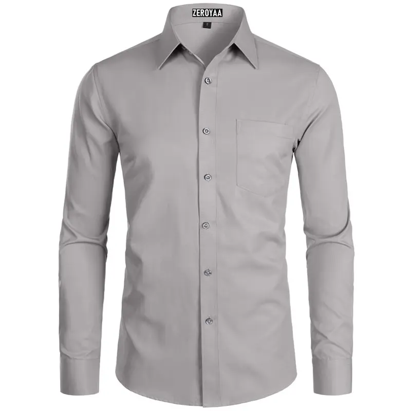 Zeroyaa Men's Long Sleeve Button Up Shirts Solid Slim Fit Casual Business Formal Dress Shirt with Pocket Menswear Korean summer outfits men funny shirts