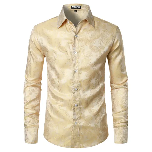 ZEROYAA Men's Paisley Jacquard Slim Fit Long Sleeve Button Up Dress Shirt for Party Prom