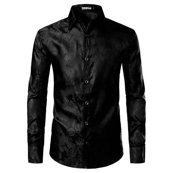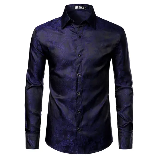 5. ZEROYAA Men's Paisley Jacquard Slim Fit Long Sleeve Button Up Dress Shirt for Party Prom