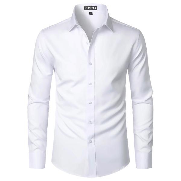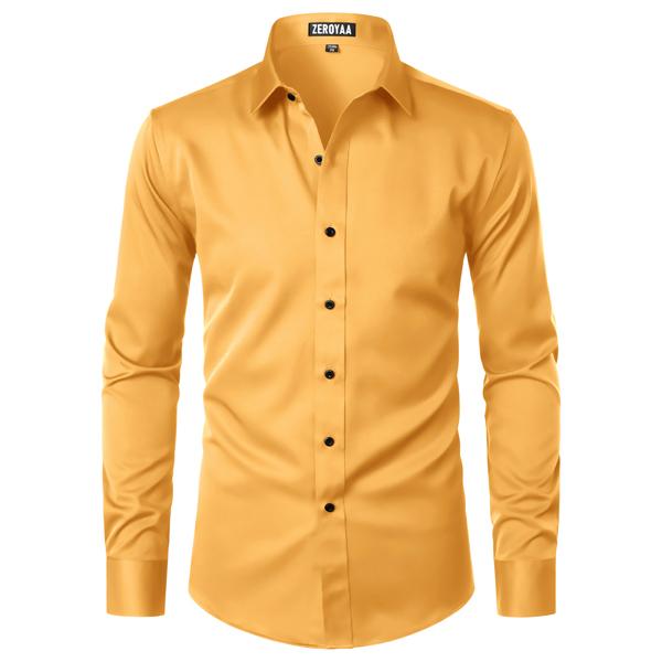 This modern slim fit shirt will upgrade your wardrobe. It features a smooth satin finish, exuding an elegant and noble appearance. Wrinkle-free fabric, soft and slightly stretchy, ensuring all-day comfort. Suitable for all occasions from weddings to business meetings