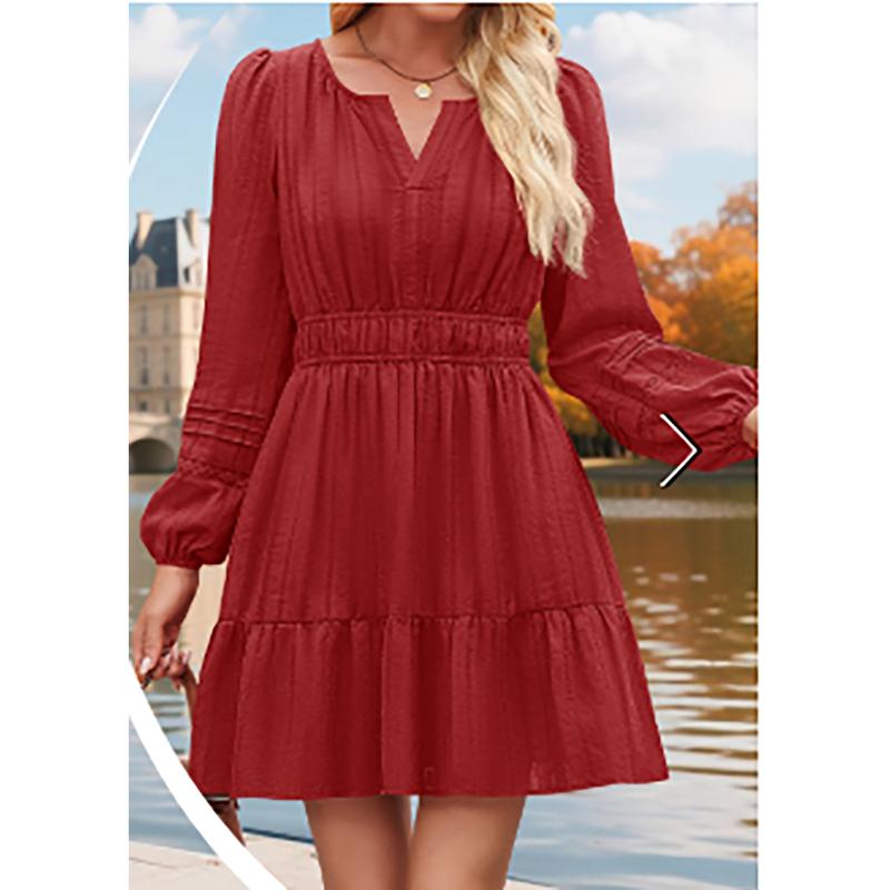 ·Features: V Neck Mini Dress; Long Sleeve Dresses; Elastic Waist Flowy Dress; Elegant A Line Dress; Swing Solid Color Dress; Boho Short Dress; Tiered Ruffle Dress; Sundress for Women 2025; Semi Formal Dresses for Women; Womens Fall Mini Dresses; Vacation Beach Dresses for Women; Graduation Dresses for Women; Short Party Dresses; Holiday Dresses for Women 2025; Teacher Outfits for Women