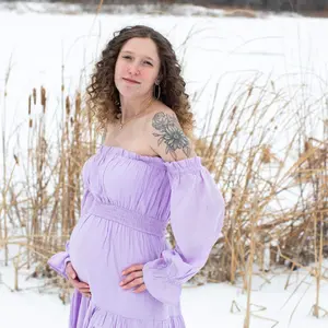 I bought this to wear to my baby shower and fell in absolute love with it! I got soooooo many compliments and just felt gorgeous 🥺 I will be wearing it to get my maternity pictures done too!! I bought an XL and even with my bump there’s still wiggle room, amazing quality, and came 2 days sooner!!