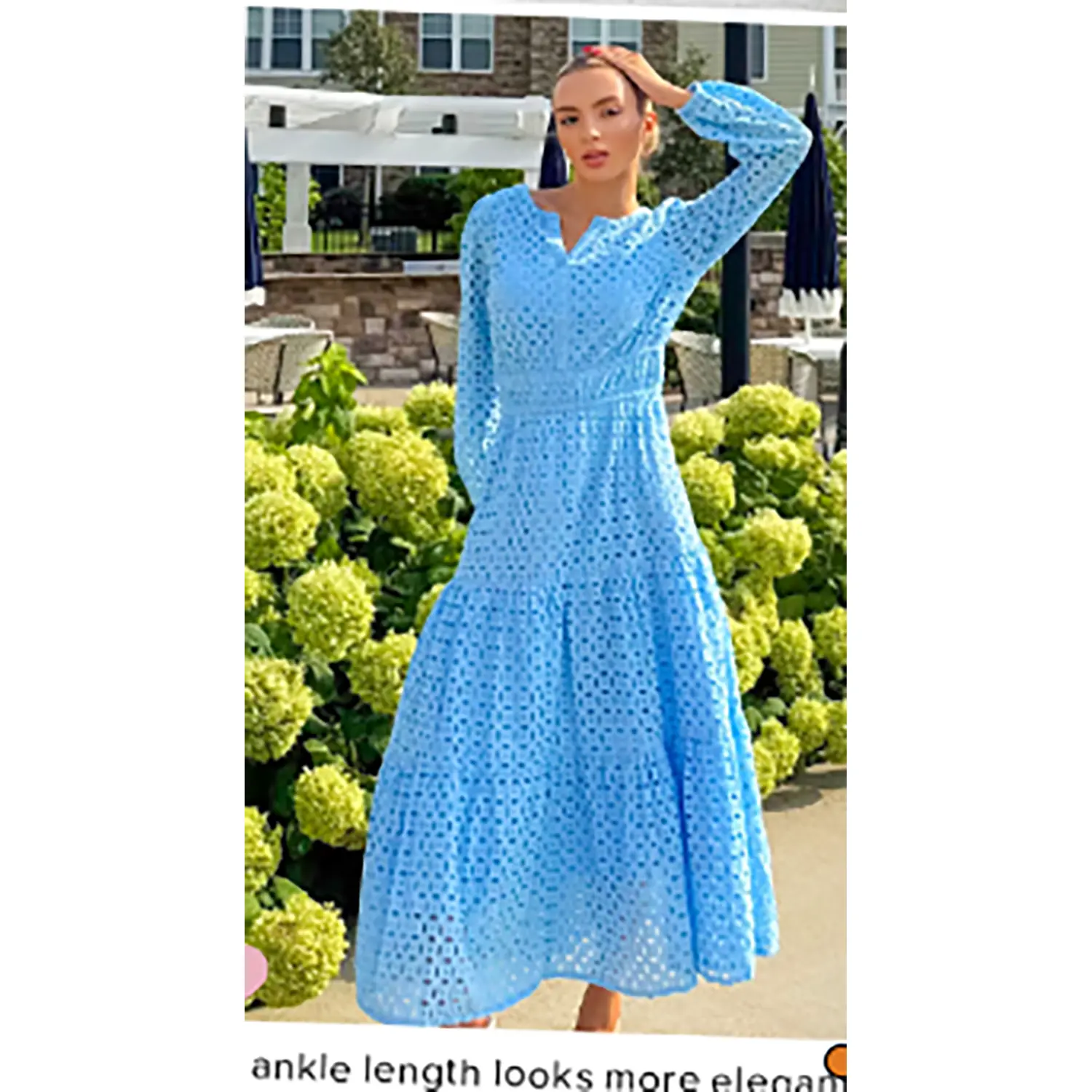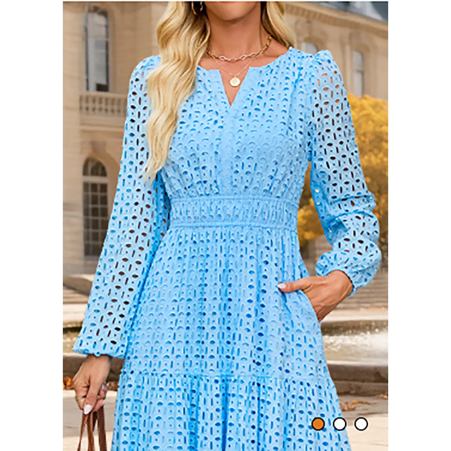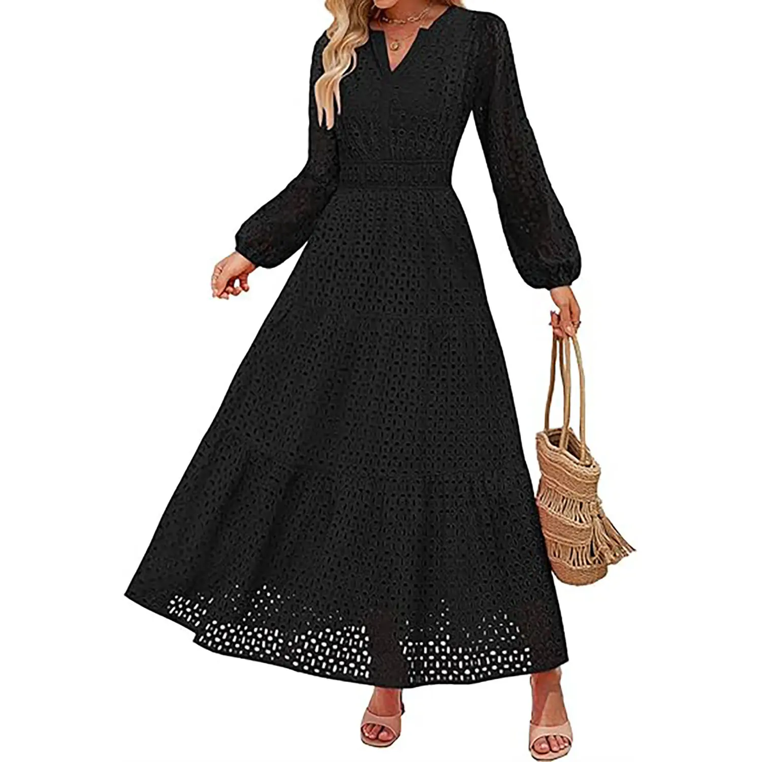·Features: Maxi dresses for women, v neck dress, long sleeve dress, eyelet dress, fall dress, a line dress, long flowy swing dress, empire waist dress, solid color dress, black dresses for women, white dress, pink dress, sky blue dress, green dress, watermelon red dress, brown dress