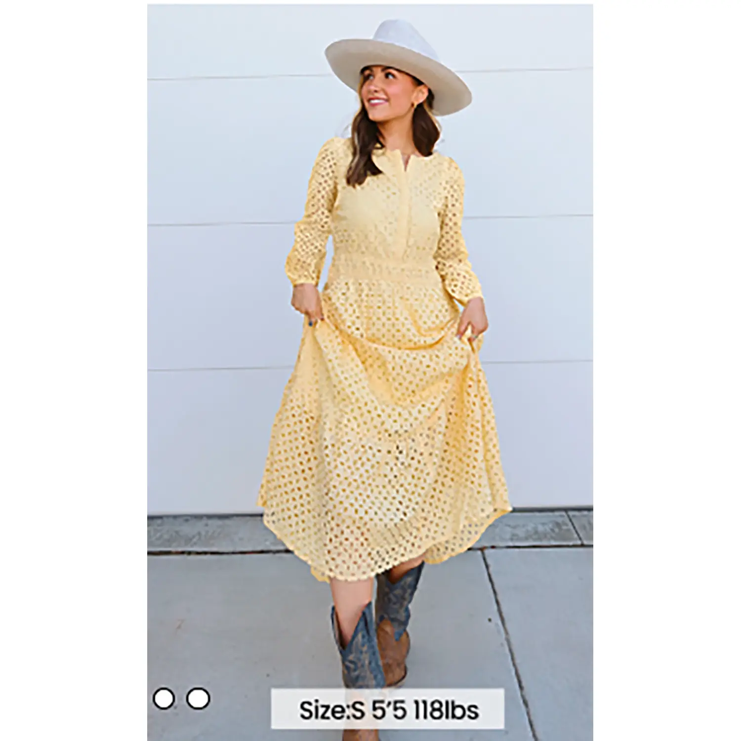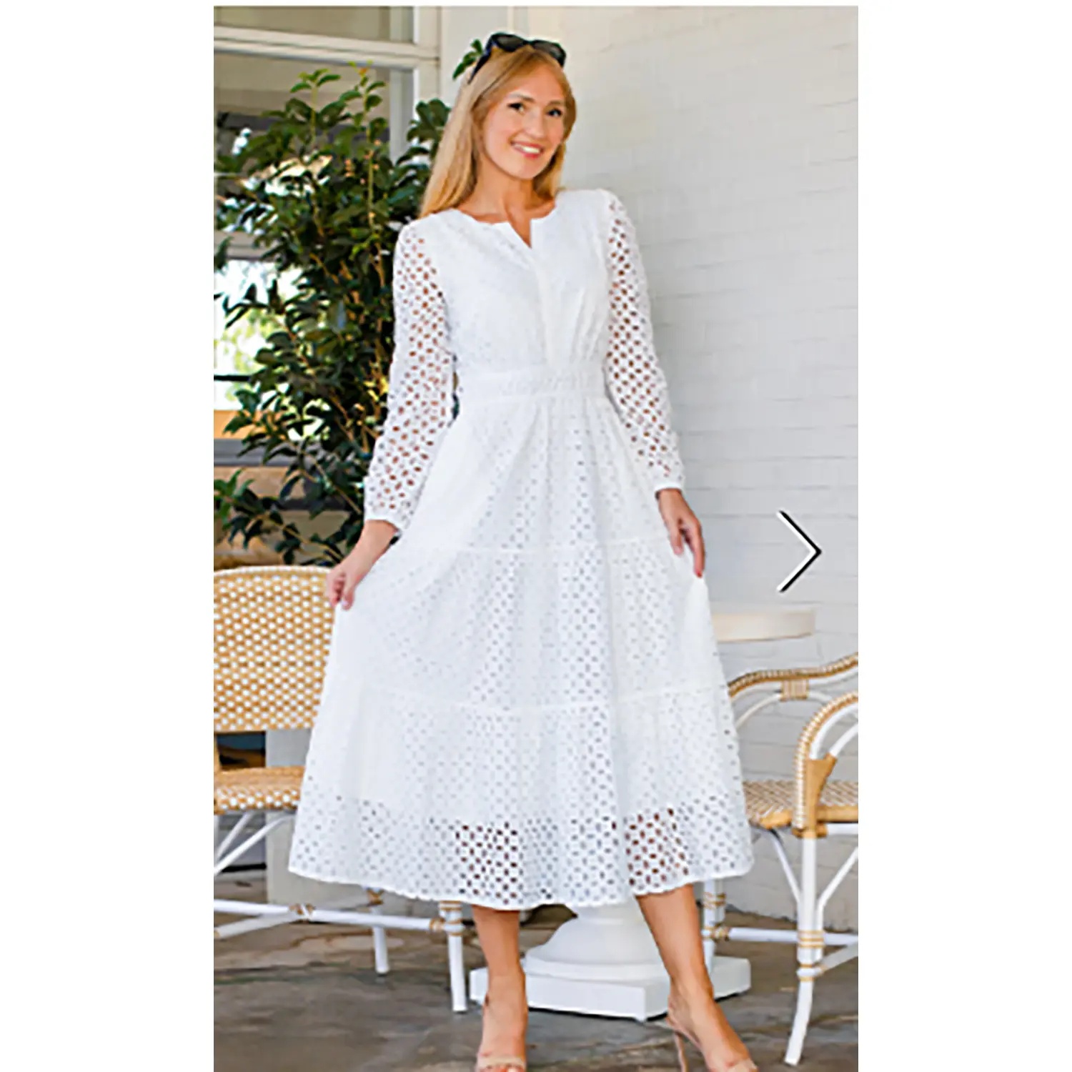·Design: This long dress has a chic lace eyelet embroidered hollow-out design, it’s not see through and makes you stand out in a crowd. The elastic waist and A-line hem design can accentuate your charming waist curve, creating a fashion and charming look